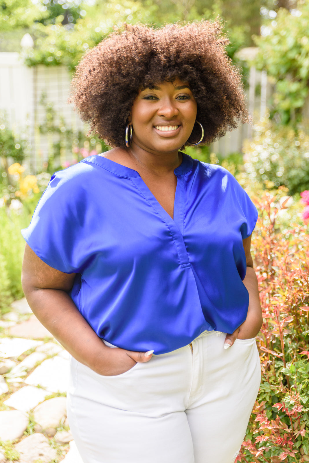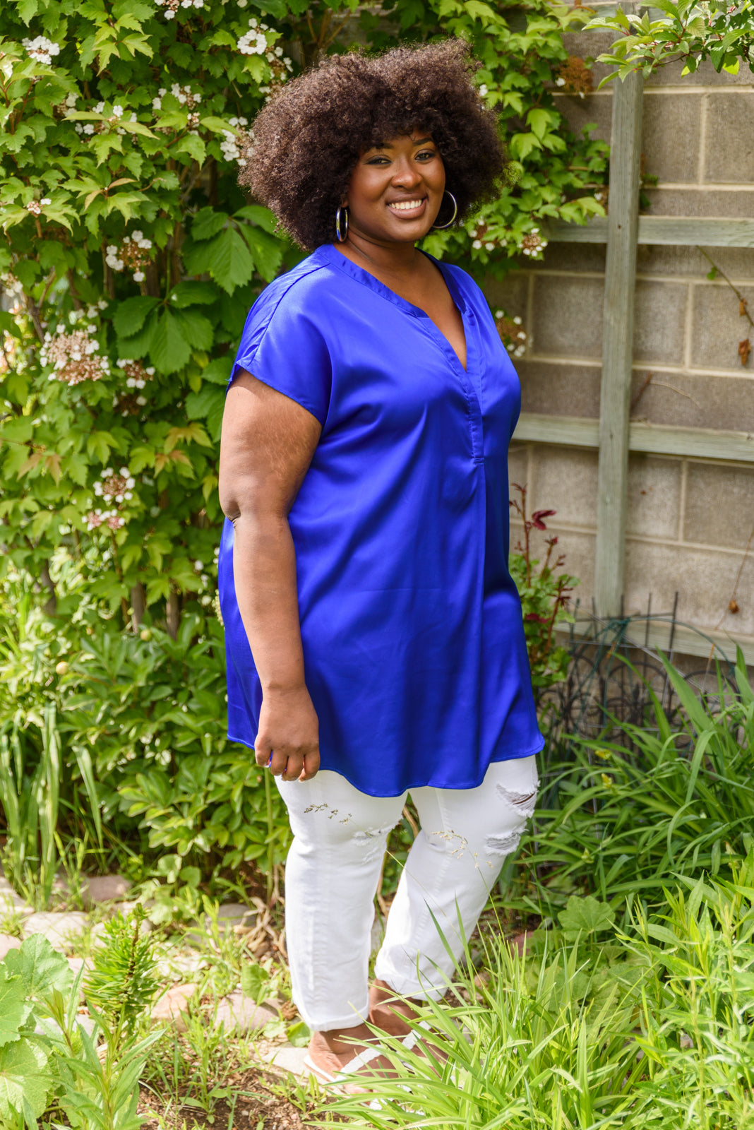 Keywords: Blue, Top, Shirt, V-Neck