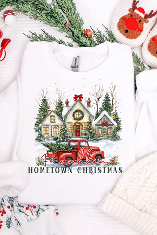 Personalize it Hometown Christmas Vintage House Red Truck Sweatshirt
