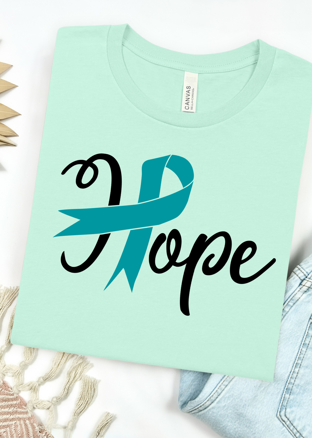 Show your support with the HOPE Ovarian Cancer Awareness Tee. Designed to raise awareness, this comfortable shirt serves as a meaningful reminder of strength and resilience. Wear it proudly to honor survivors, support fighters, and inspire hope in the fight against ovarian cancer.