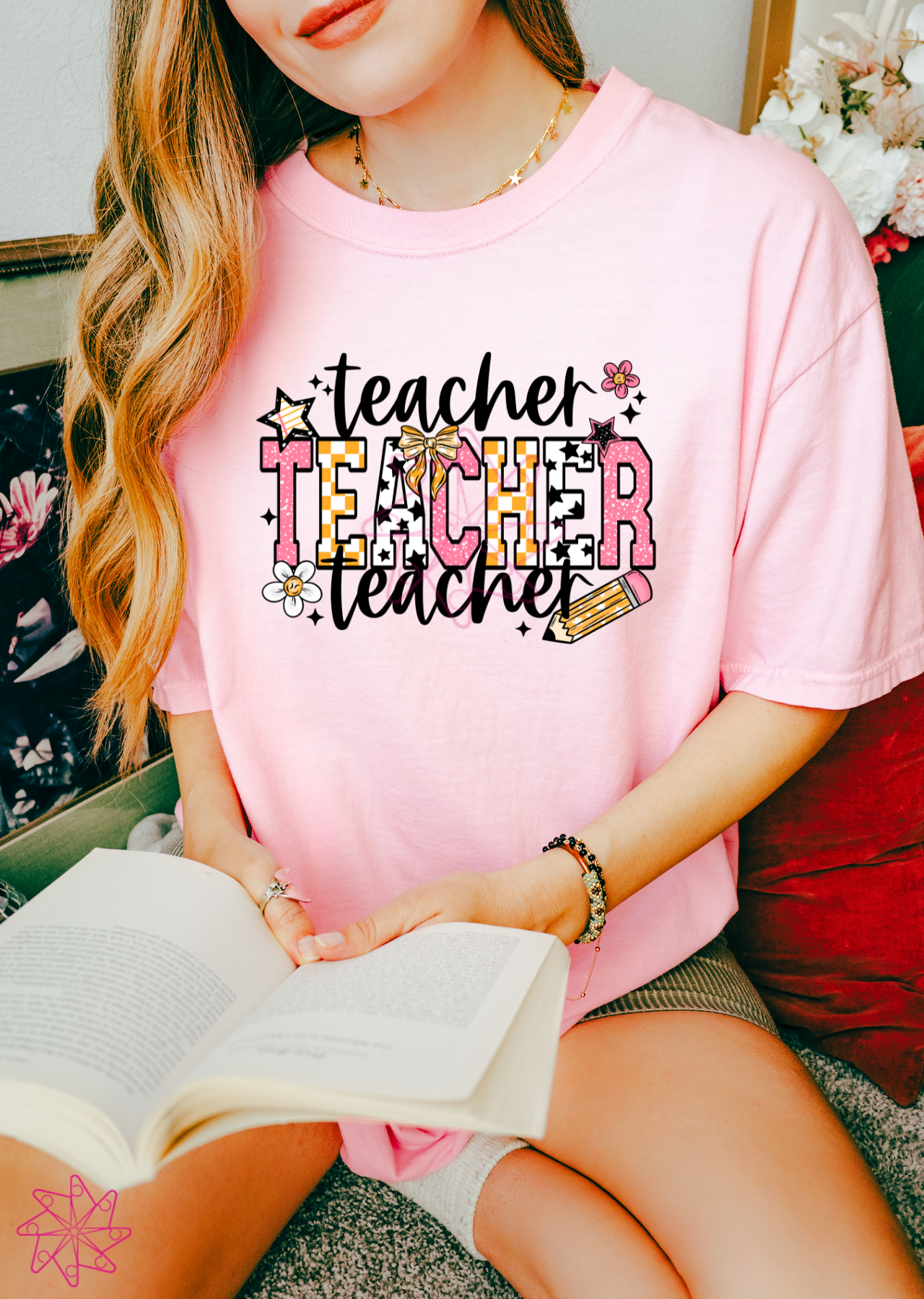 Add a touch of fun to your teaching wardrobe with the Teacher Polka Dot Pencil Tee! Featuring a charming polka dot pencil design, this playful tee brings a cheerful vibe to any classroom. Soft and comfortable, it’s perfect for teachers who want to inspire smiles while staying stylish all day long.