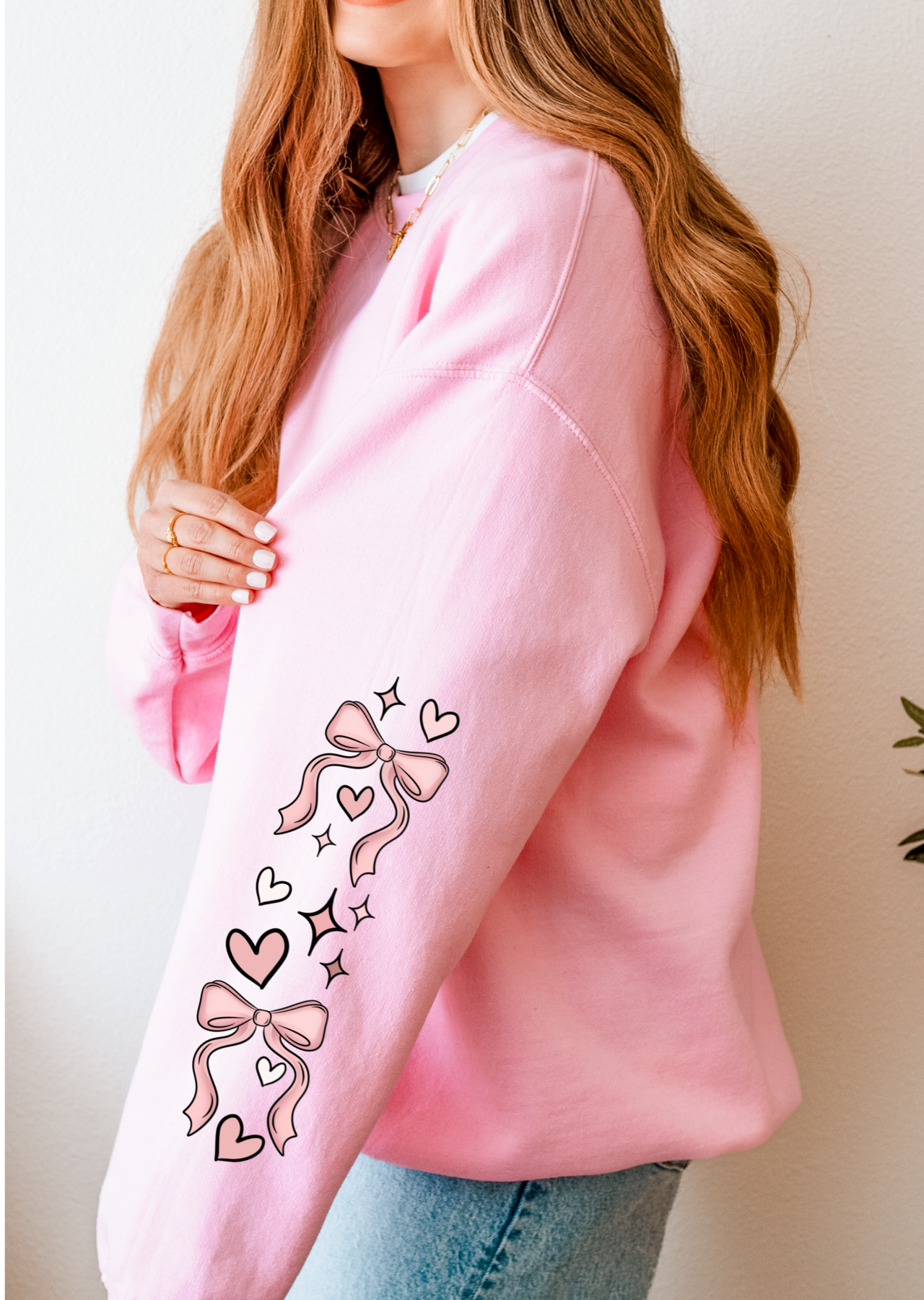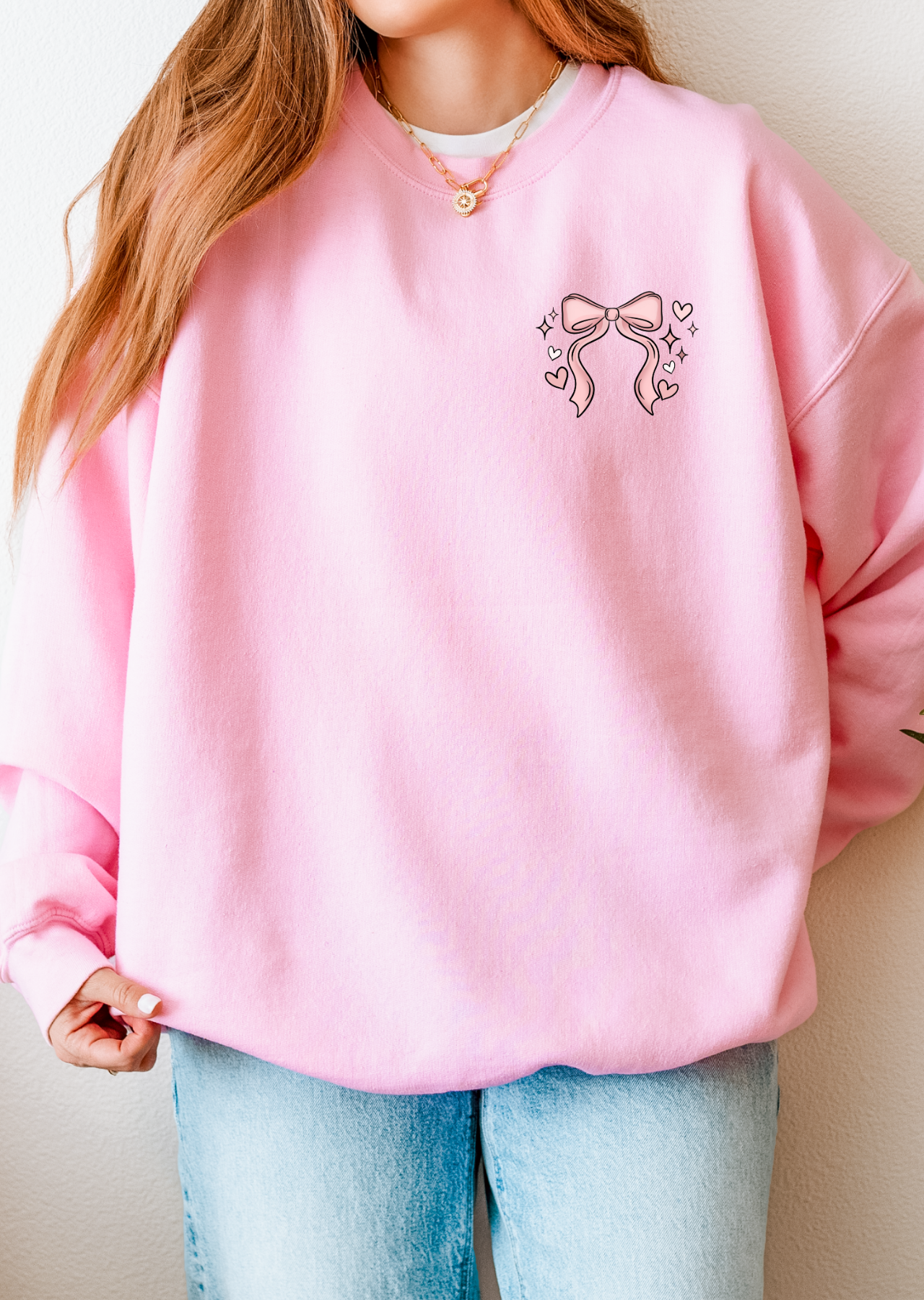 Stay cozy and cute in the Girlie Bows With Sleeves Sweatshirt! Featuring charming bow details and comfy sleeves, this playful sweatshirt adds a fun twist to your casual wardrobe. Perfect for lounging or layering, it keeps you warm while showing off your sweet style.