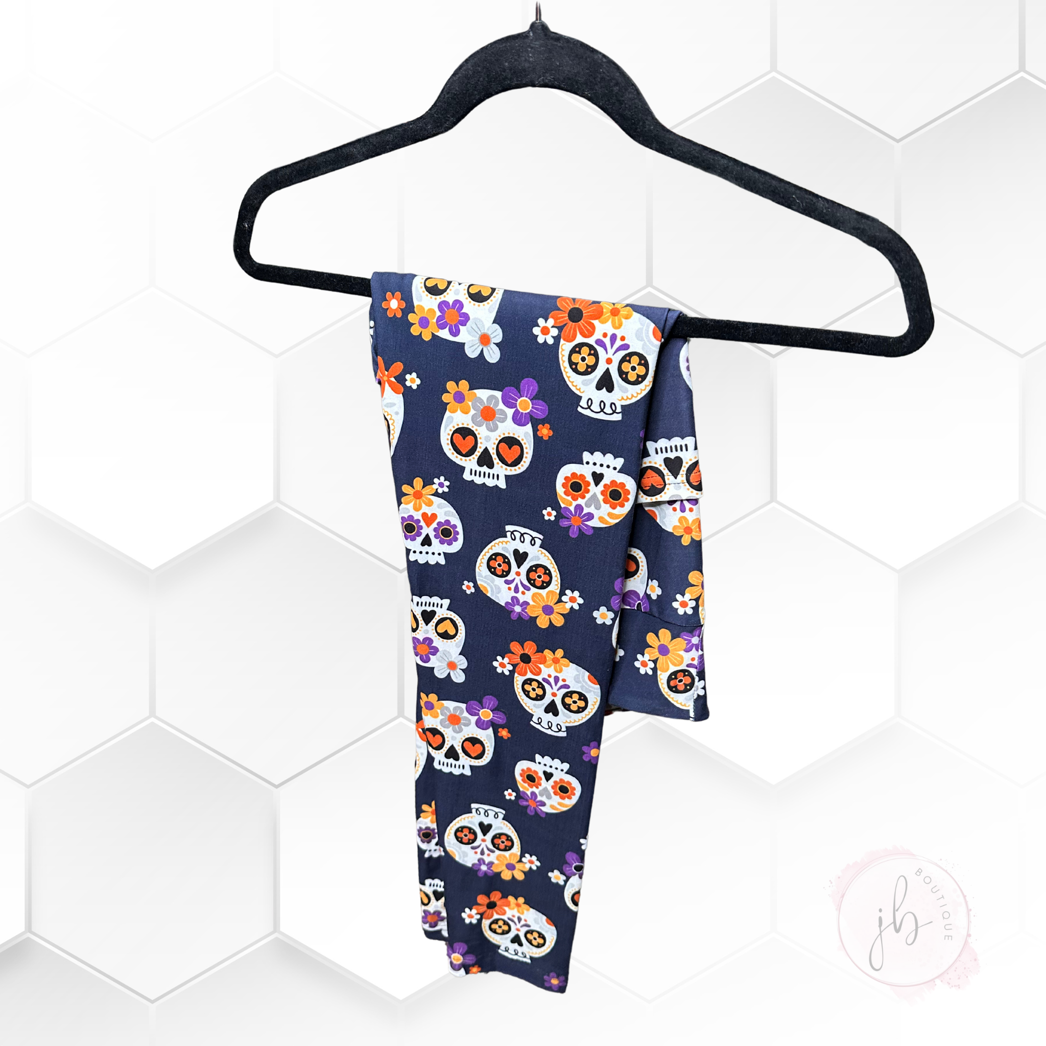 Celebrate life's vibrant moments in these eye-catching Day of the Dead Skull Pocket Leggings! Featuring bold, colorful skull designs inspired by traditional Día de Muertos artwork, these leggings blend festive flair with everyday comfort. The convenient side pockets keep your essentials close while you move through your day with style. Perfect for Halloween parties, themed events, or anyone who loves bold, artistic fashion. Soft, stretchy fabric ensures all-day wearability without sacrificing that statement-making look.
