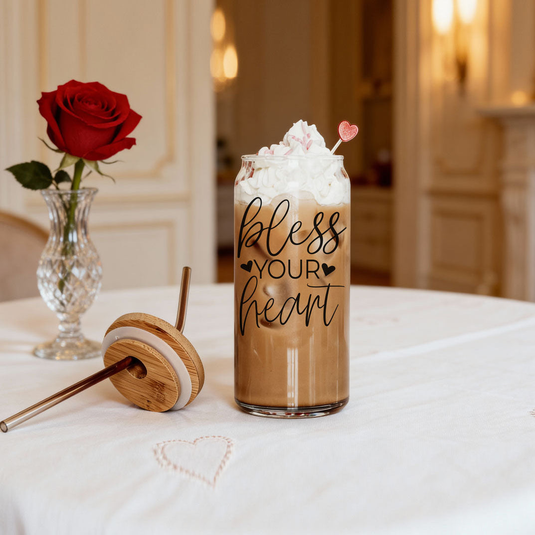 ✨ Bless Your Heart Glass Cup with Bamboo Lid ✨