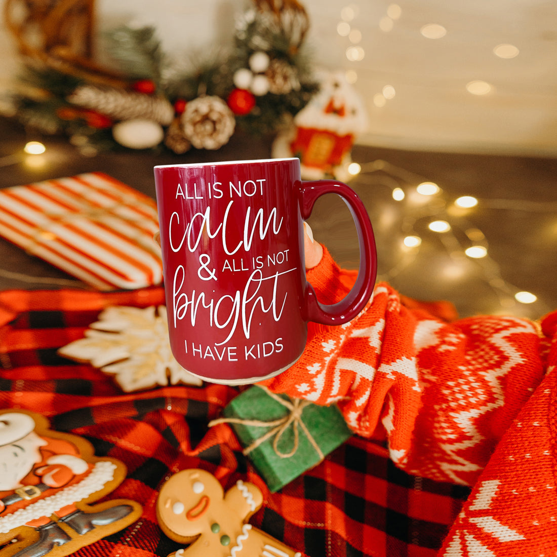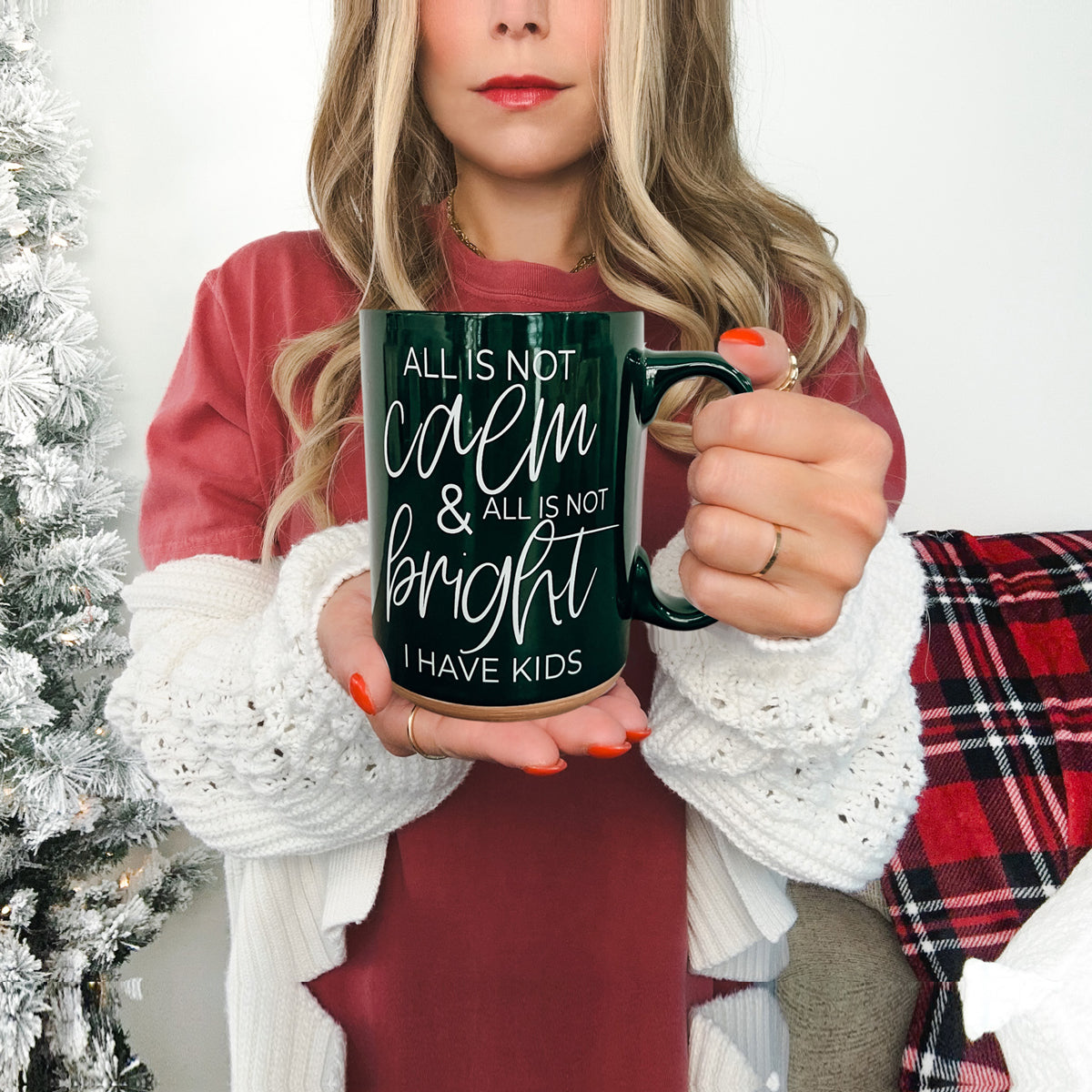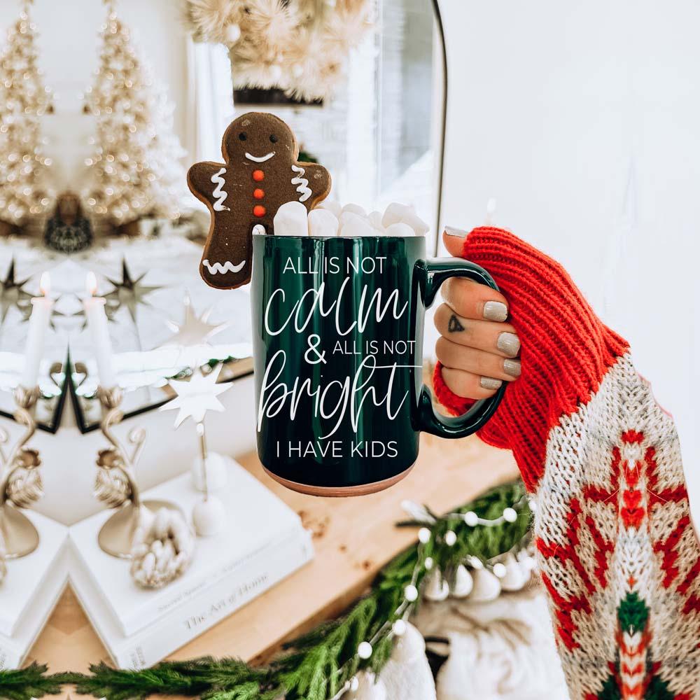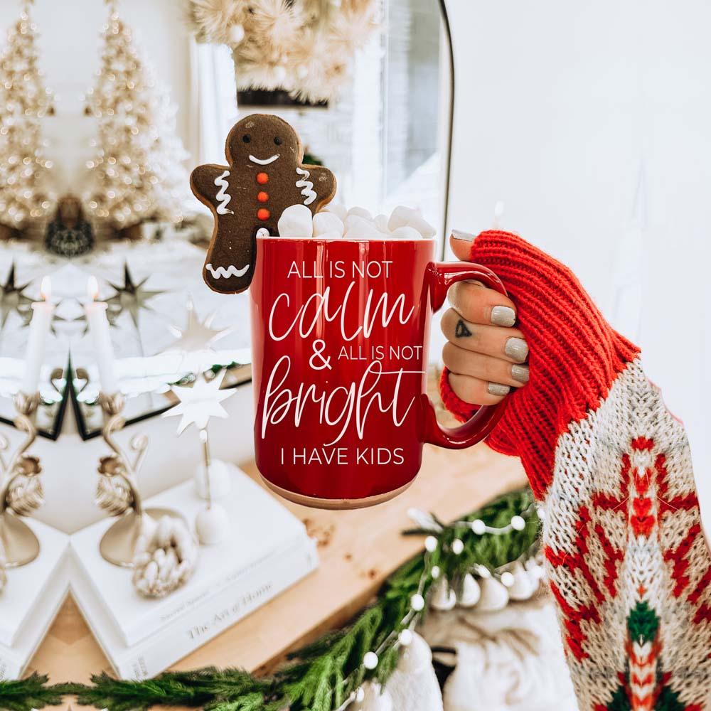 Our brand-new Christmas Ceramic Coffee Mug is double-sided for maximum festive snark. Available in jolly red or holly green, this mug boldly declares, "All is not calm, all is not bright, I have kids." Because, let’s face it, no amount of holiday cheer can drown out the delightful chaos of family life!