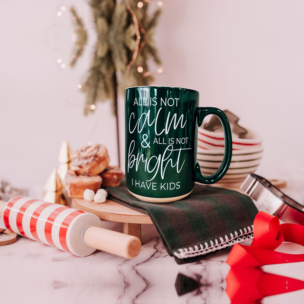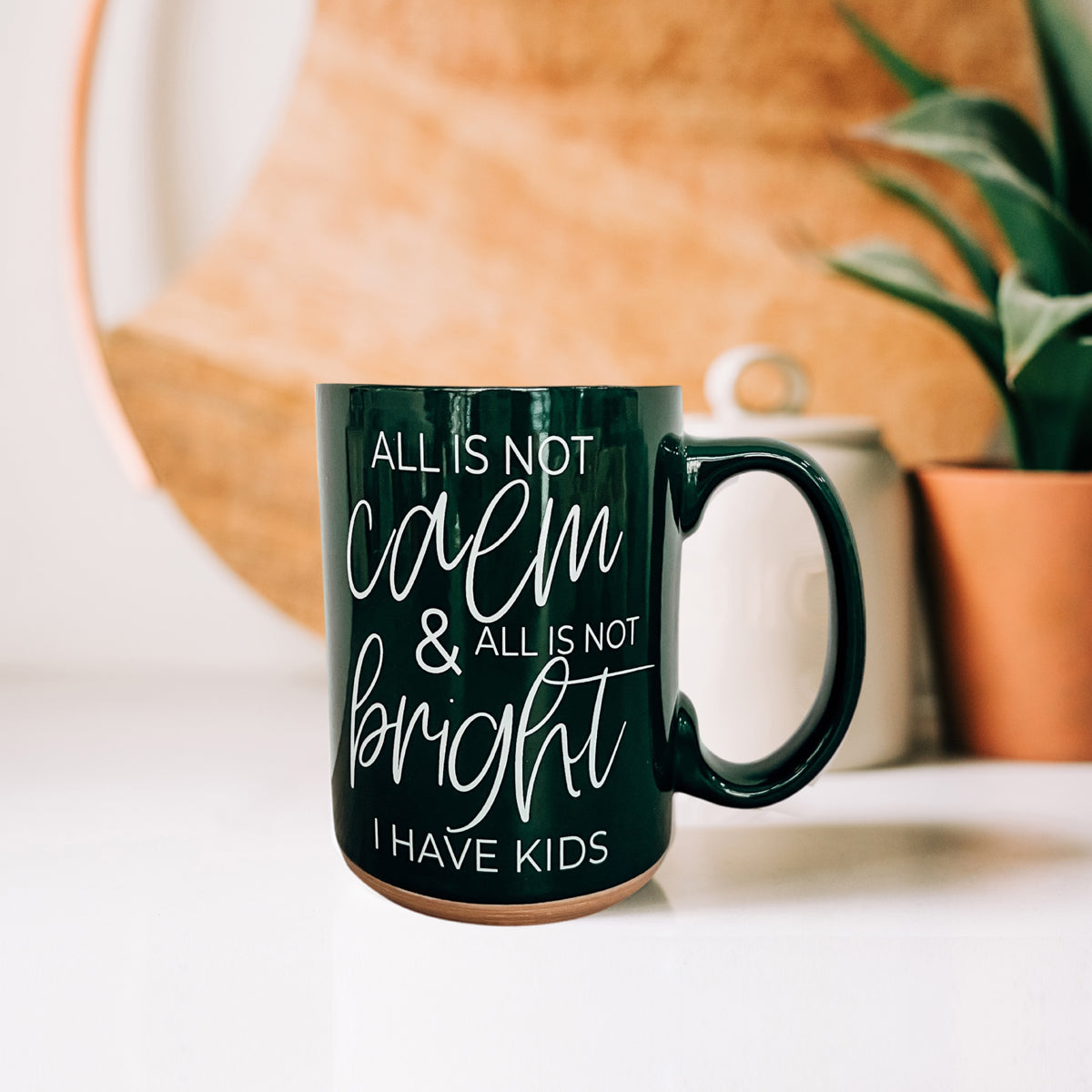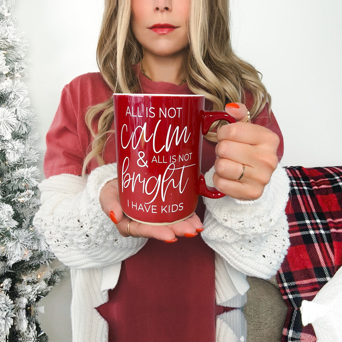 Our brand-new Christmas Ceramic Coffee Mug is double-sided for maximum festive snark. Available in jolly red or holly green, this mug boldly declares, "All is not calm, all is not bright, I have kids." Because, let’s face it, no amount of holiday cheer can drown out the delightful chaos of family life!