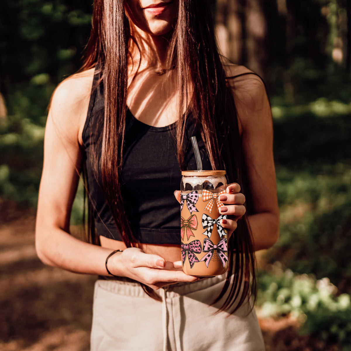 Say hello to the tumbler that's serving main character energy with a side of pumpkin spice! This isn't just any glass cup – it's the ultimate accessory for anyone who believes life is better with bows (and caffeine, obviously).