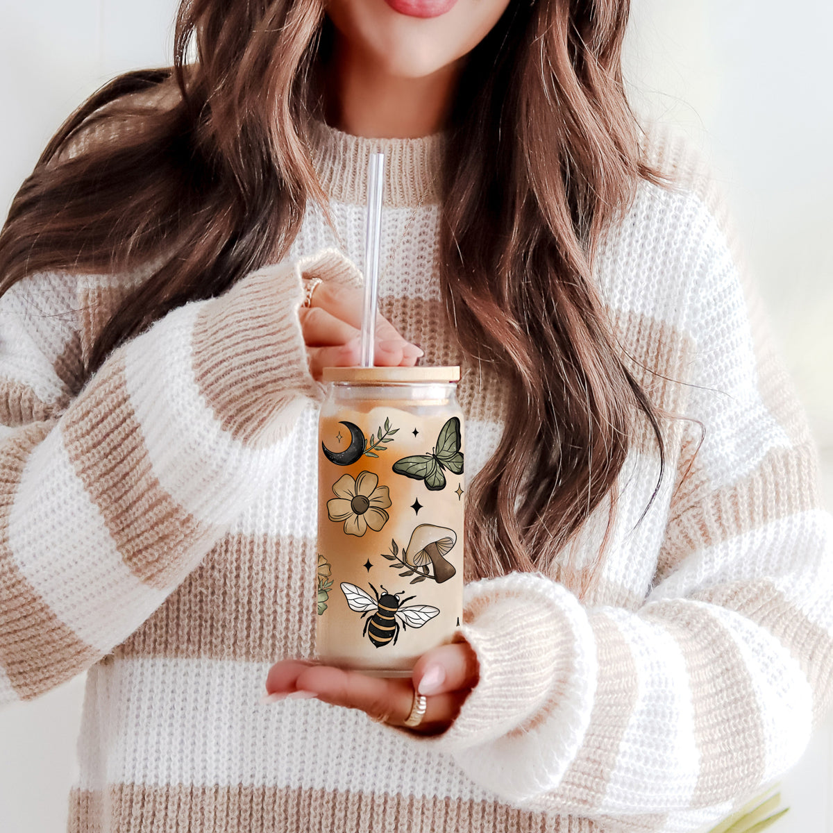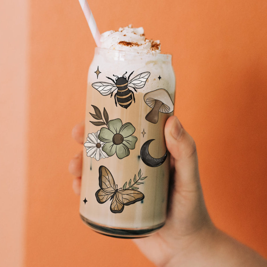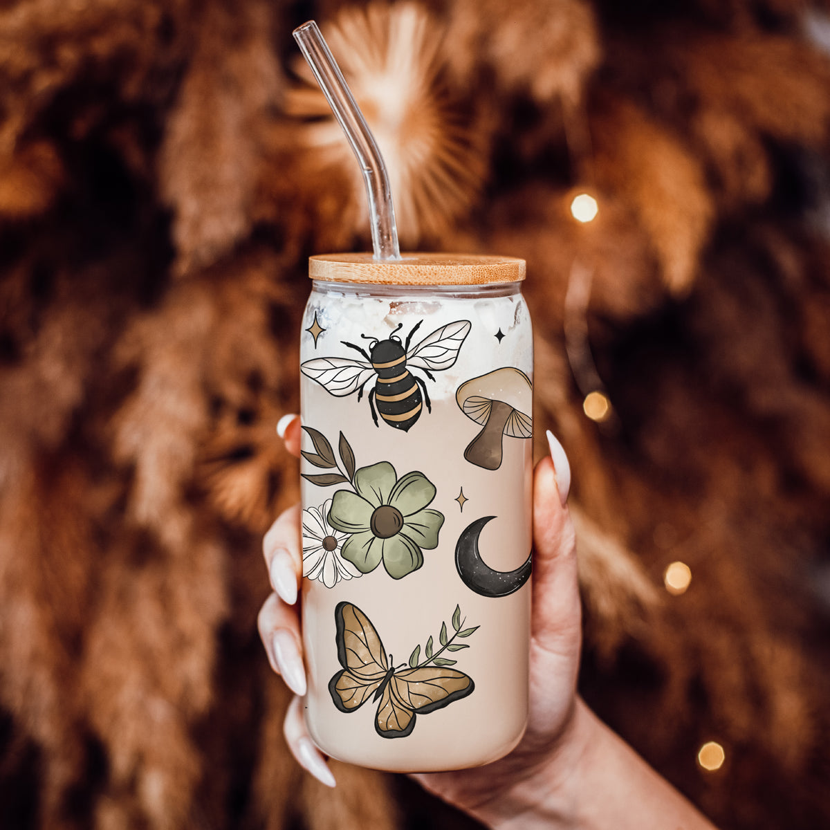 This 20oz glass beauty features a whimsical collection of garden-loving ghosts, buzzing bees, dreamy butterflies, and magical mushrooms - because who says spooky can't be cottagecore cute? It's basically what would happen if a ghost decided to start an herb garden (and honestly, we're here for it).