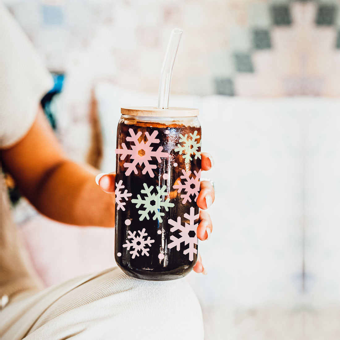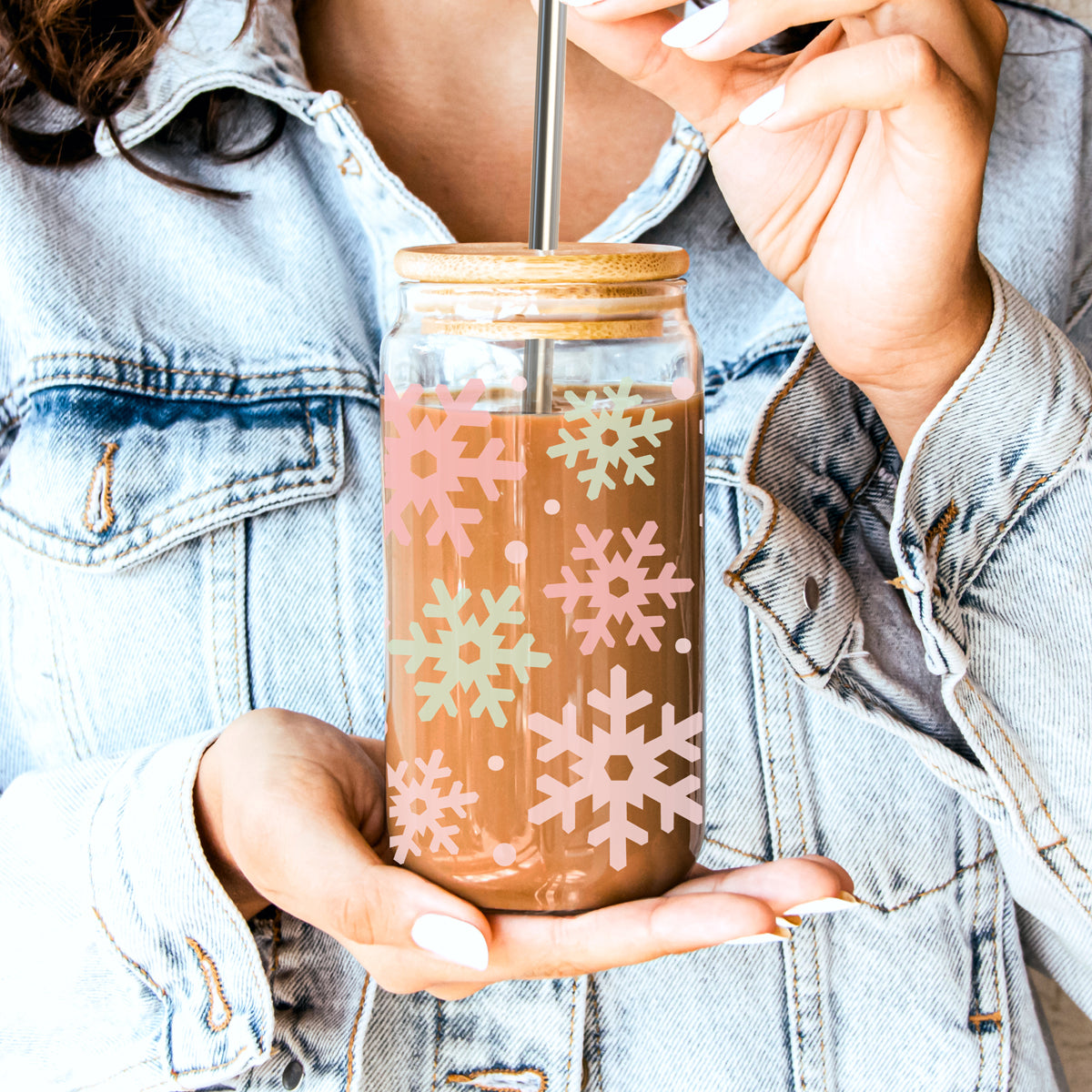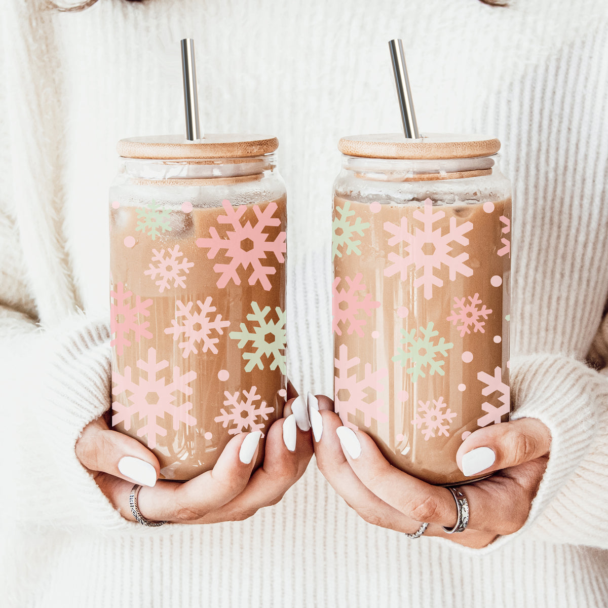 Introducing our 'Pastel Snowflake Delight' cup, sprinkled with charming pastel snowflakes that add a touch of frosty fun to your holiday sips.