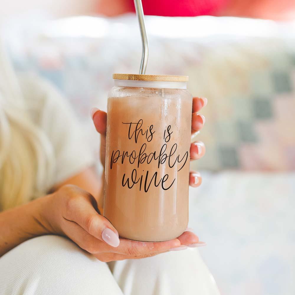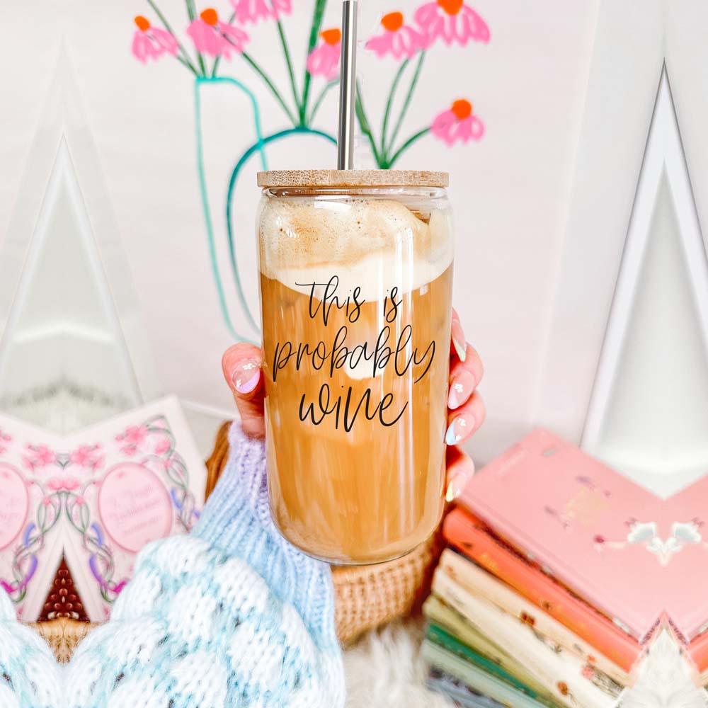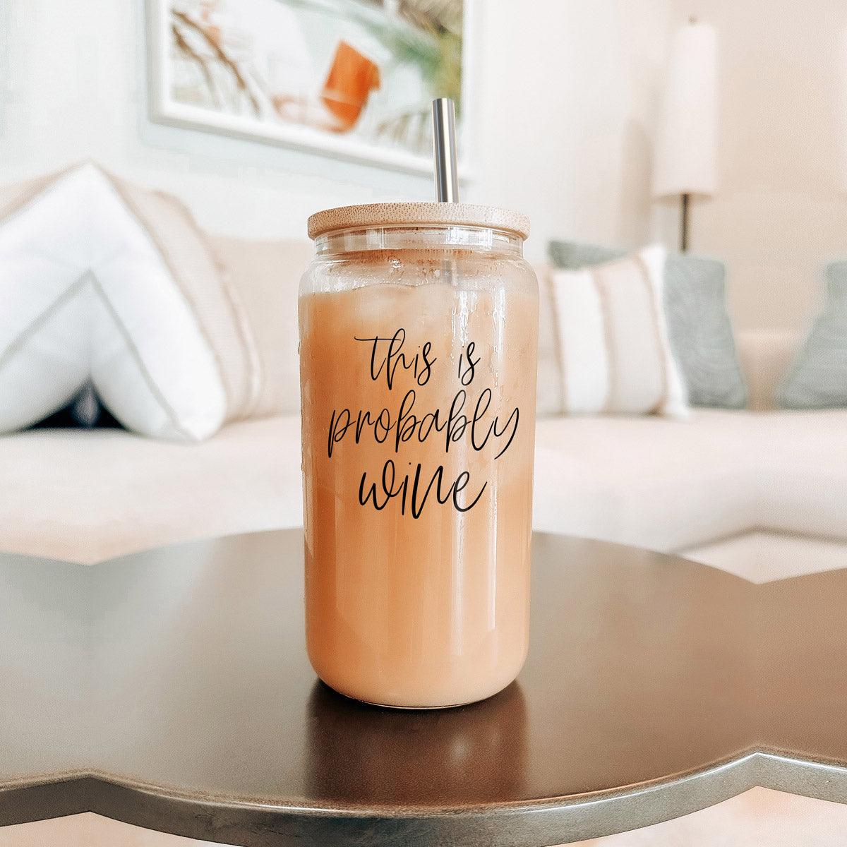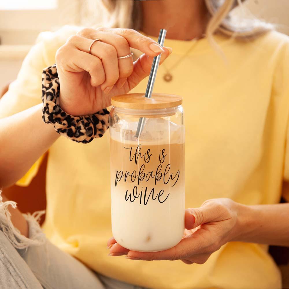 Our glasses with bamboo tops. Drink it with the top and straw of choice, remove the bamboo lid and drink straight from the glass.