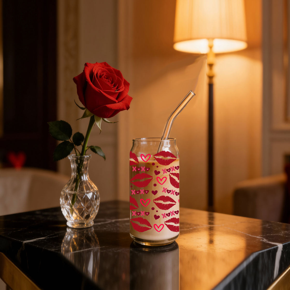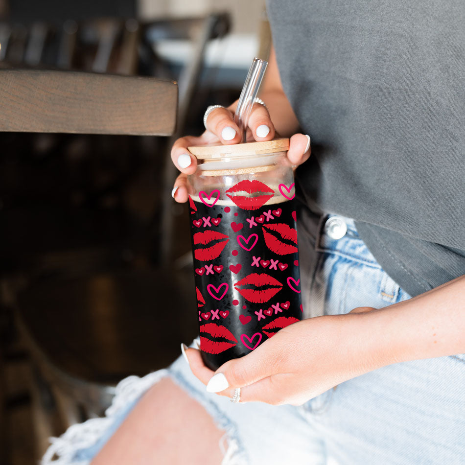 Get ready to pucker up and sip in style! This fabulous 20oz glass cup is a flirty mix of red lips, hearts, and playful “XOXO” messages, making it the ultimate accessory for lovebirds and single pringles alike. Adorned with pink hearts, it’s a charming reminder that every drink deserves a little kiss!