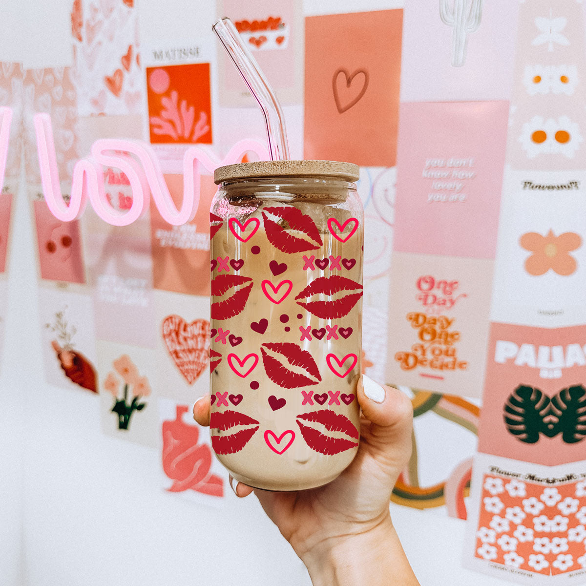 Equipped with a bamboo lid and a chic glass straw, this cup is perfect for your favorite iced beverages, smoothies, or simply water—because hydration is always in vogue. Show off your love for life, laughter, and everything sweet with each sip. Cheers to love, kisses, and keeping it sassy! 💖✨