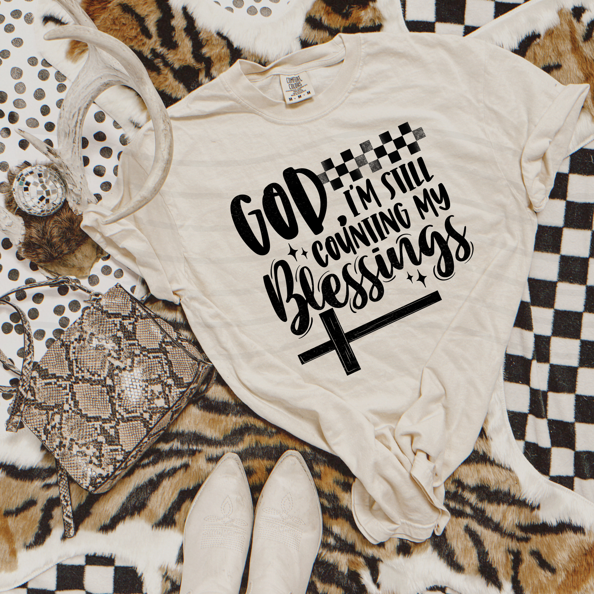 Celebrate the little joys in life with the Count My Blessings Tee. This playful graphic tee pairs comfort with a positive message, perfect for brightening your day or sparking smiles wherever you go. Soft fabric and a relaxed fit make it ideal for casual outings or cozy days at home. Wear your gratitude proudly and keep the good vibes flowing!