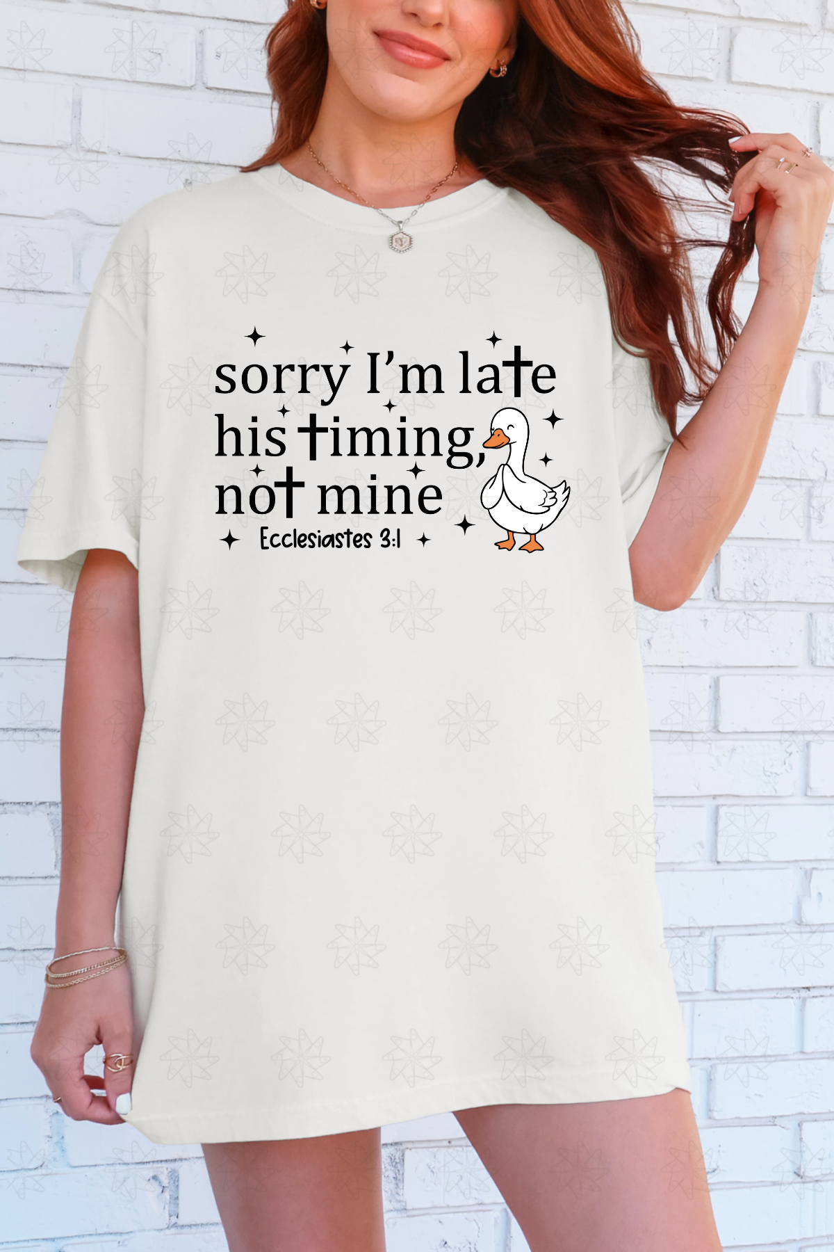 Embrace patience with a wink in the His Timing Not Mine Tee. This playful shirt reminds everyone that things happen exactly when they’re meant to — no rushing allowed! Made for comfort and confidence, it’s perfect for anyone who knows that good things take their own sweet time.