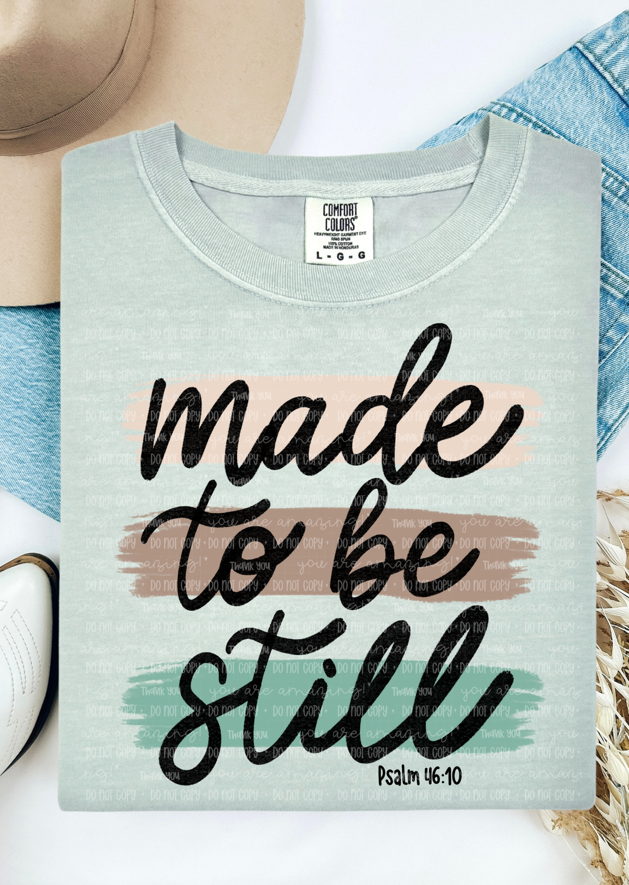 Embrace your calm vibe with the Made to be Still Comfort Colors T-Shirt. Crafted for ultimate softness and laid-back style, this tee invites you to slow down and enjoy the moment. Perfect for those who know that sometimes, stillness is the best kind of movement.