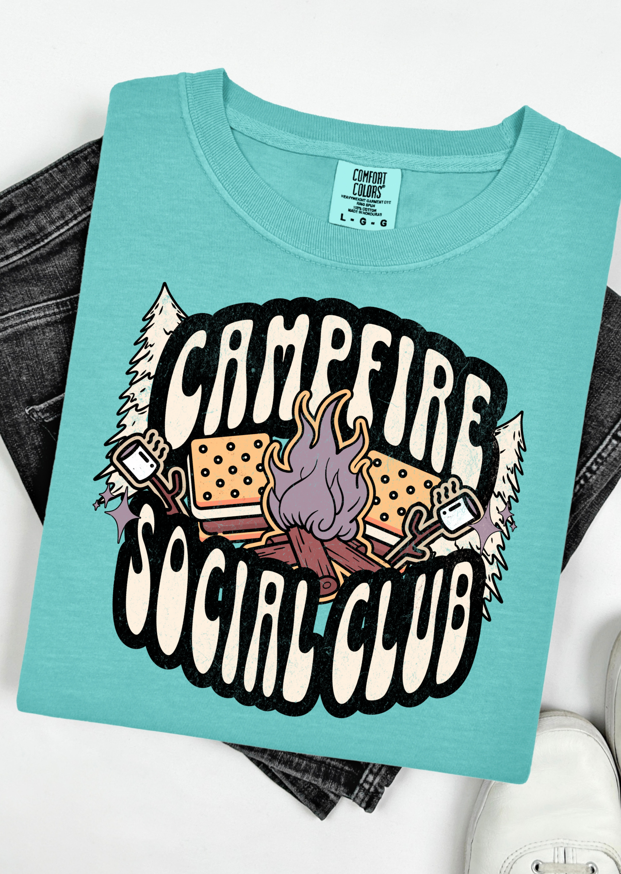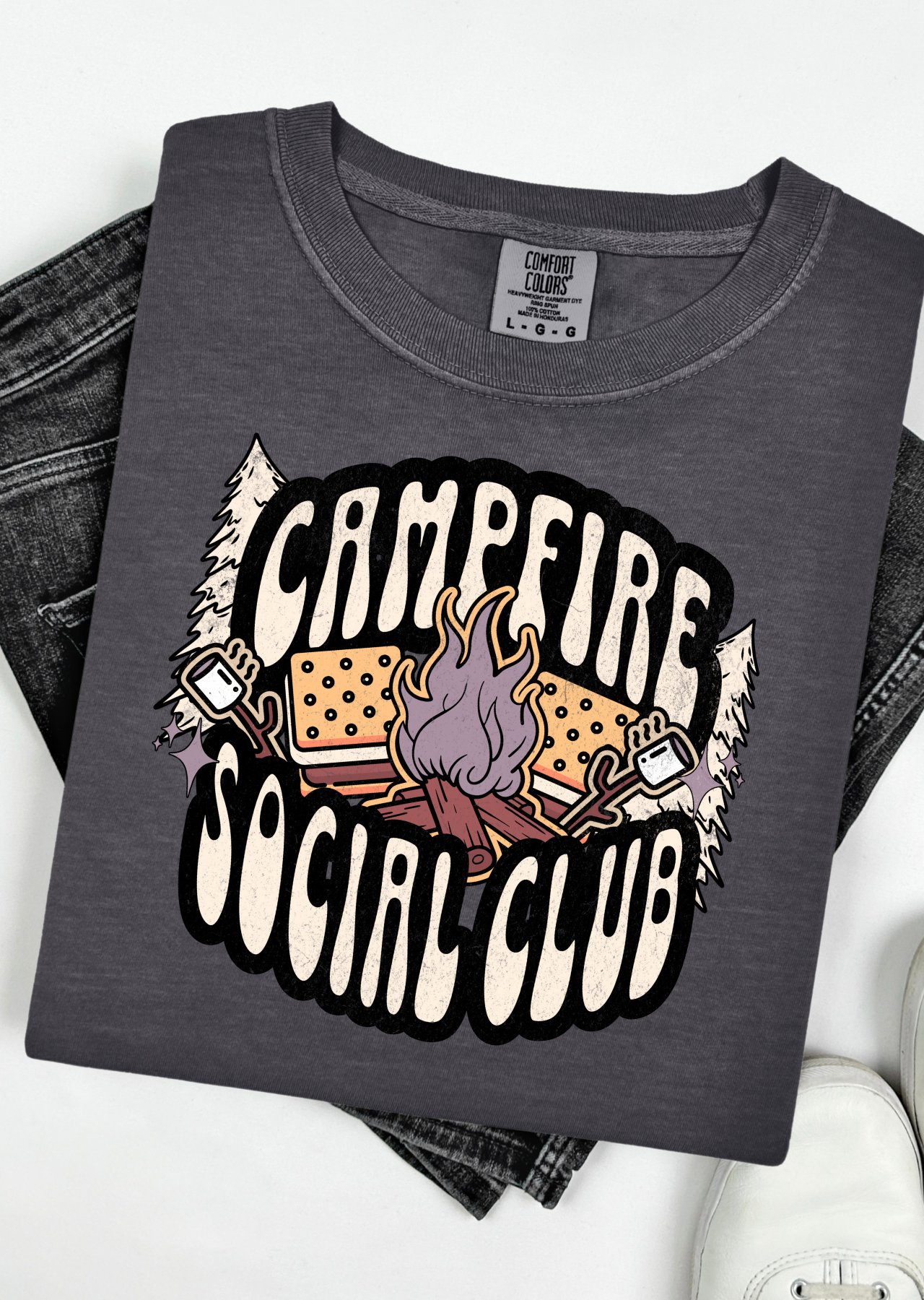 Gather around in style with the Campfire Social Club Tee! This comfy shirt is perfect for sharing stories, roasting marshmallows, or just hanging out with friends. Its playful design sparks good vibes and cozy memories wherever you go. Whether you're by the fire or out on an adventure, this tee keeps the fun glowing bright.