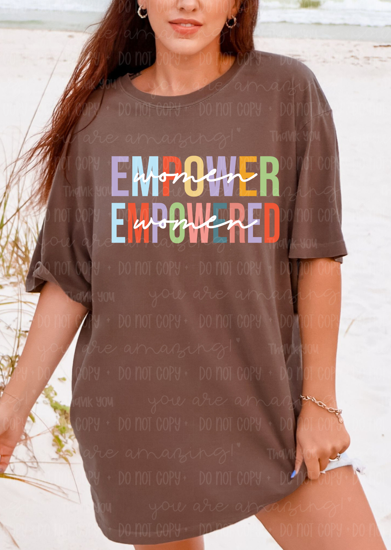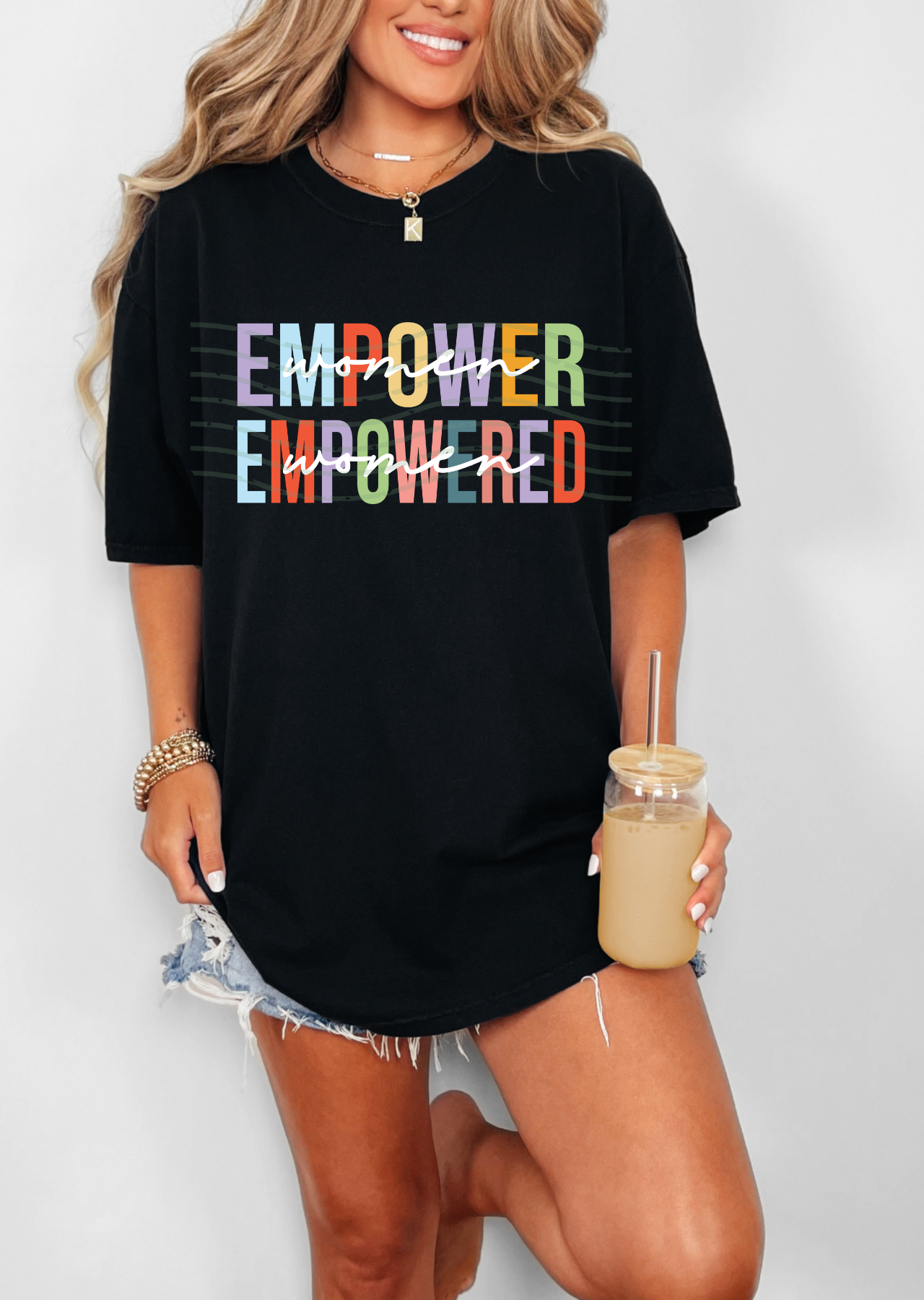 The Empower Women Tee adds a vibrant, playful pop to your wardrobe with its bright DTF-printed artwork that celebrates strength and positivity. While colors may subtly shift depending on lighting and fabric texture, each shirt maintains its lively and cheerful spirit, making it a standout piece. Perfect for those who want to express empowerment and joy through fashion, this tee combines comfort with a bold statement. Wear it to brighten your day and inspire those around you with a touch of fun and confidence in every outfit.