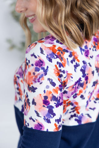 IN STOCK Natalie Pullover - Autumn Purple Abstract and Navy FINAL SALE