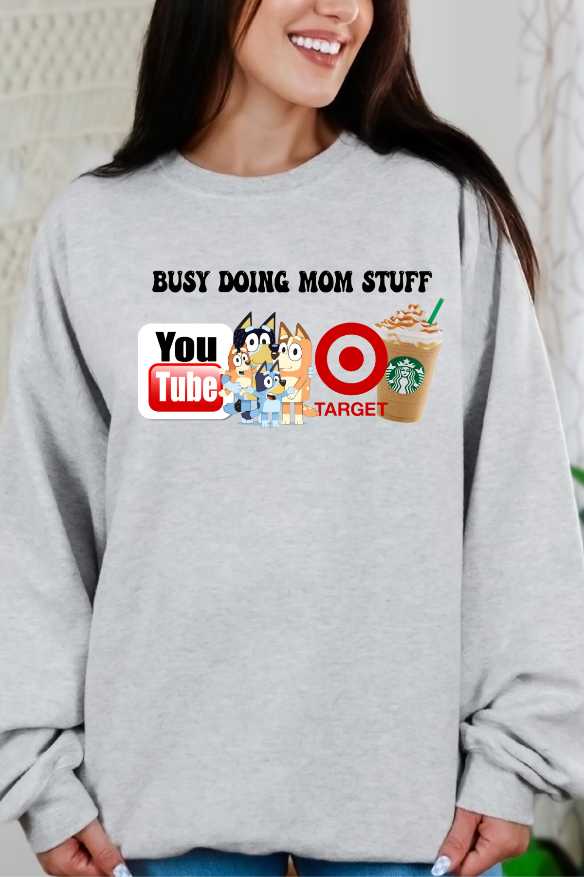 Never not busy, and never not mom-ing. Stay cozy while tackling the #momlife with this Busy Doing Mom Stuff sweatshirt watching you tube. Perfect for running errands, cleaning up messes, and all other mom duties. (And it's also great for lounging on the couch, let's be real.)"