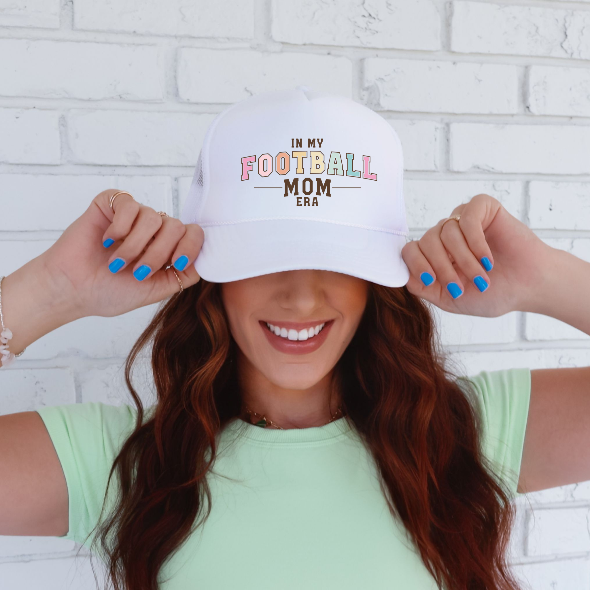 Mom Football Era Trucker Hat This playful cap blends sporty vibes with a touch of style, perfect for showing off your team spirit while keeping cool. Its breathable mesh back and adjustable snap closure ensure a comfy fit from kickoff to the final whistle. Elevate your fan gear with a hat that’s as fun as the game itself! Brand Otto
