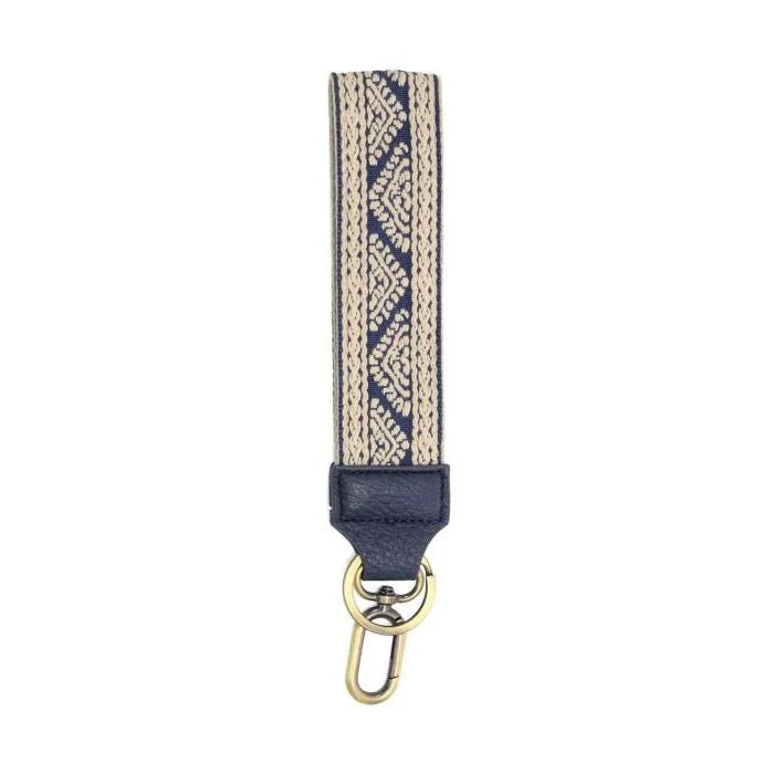 Joy Susan Easy Find Wristlet Keychain in Denim Geo Pyramid