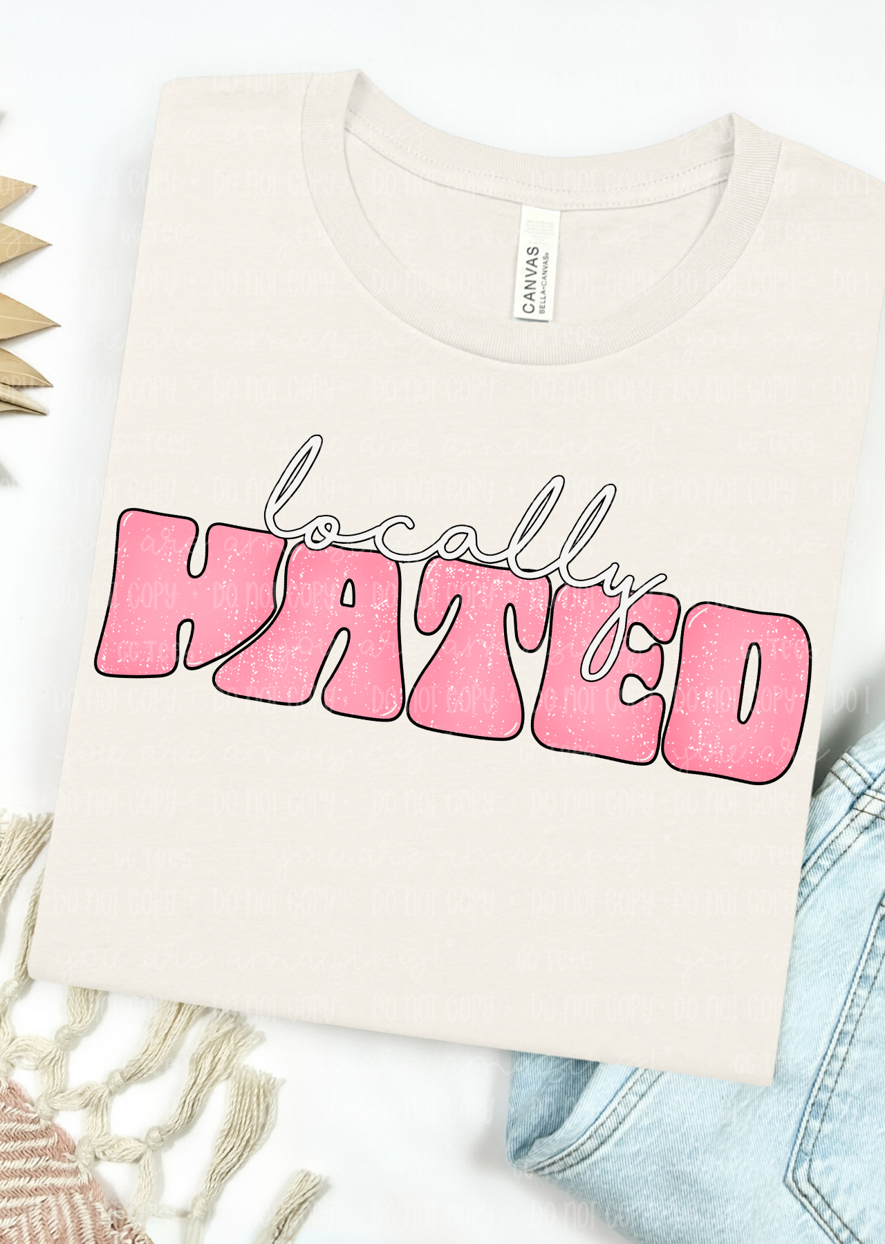 Show off your bold side with the Locally Hated Tee—a playful way to embrace your unique vibe. Crafted for comfort and style, this tee lets you stand out while keeping things lighthearted. Perfect for those who love to turn heads and spark conversations wherever they go.