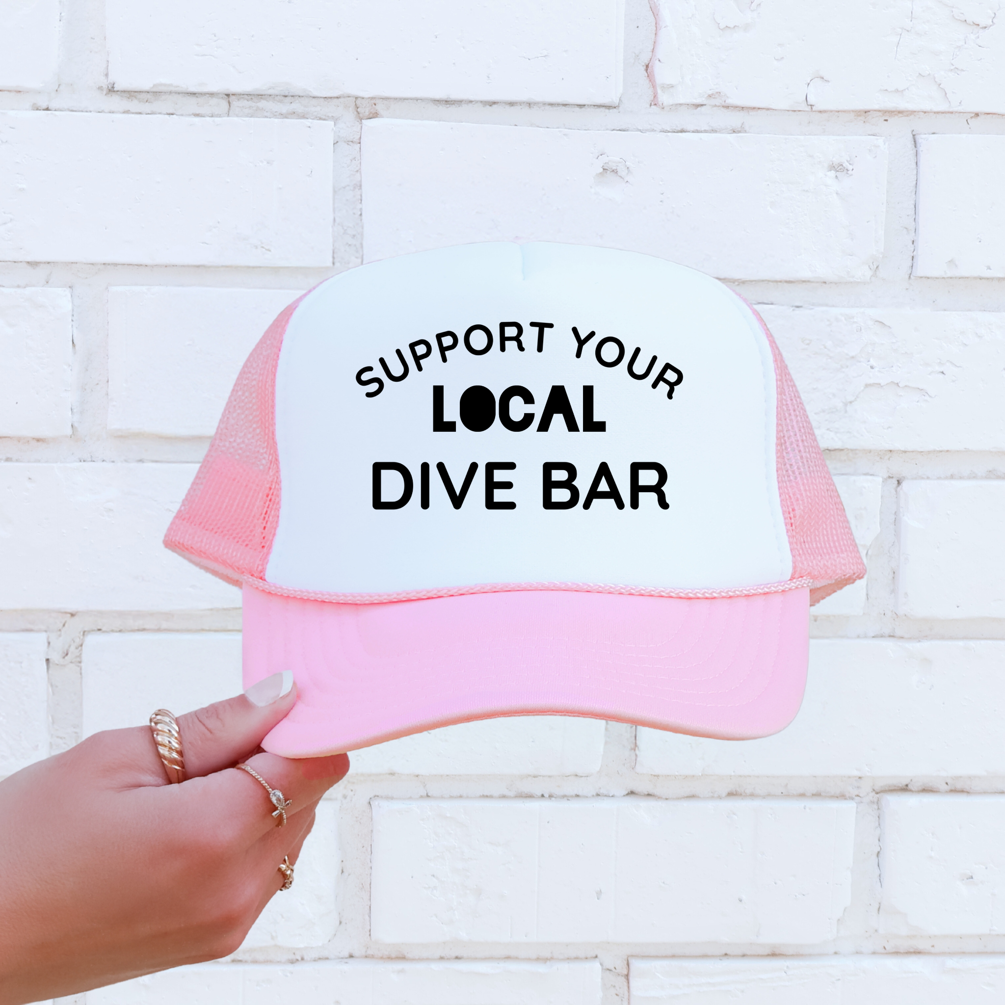 Show off your love for the neighborhood watering hole with the Support Your LOCAL Dive Bar Trucker Hat. This laid-back hat combines classic trucker style with a cheeky message, perfect for those who appreciate good drinks and great company. Breathable mesh keeps you cool while the adjustable snapback ensures a comfy fit for any adventure. Wear it proud and keep your local dive bar spirit alive!