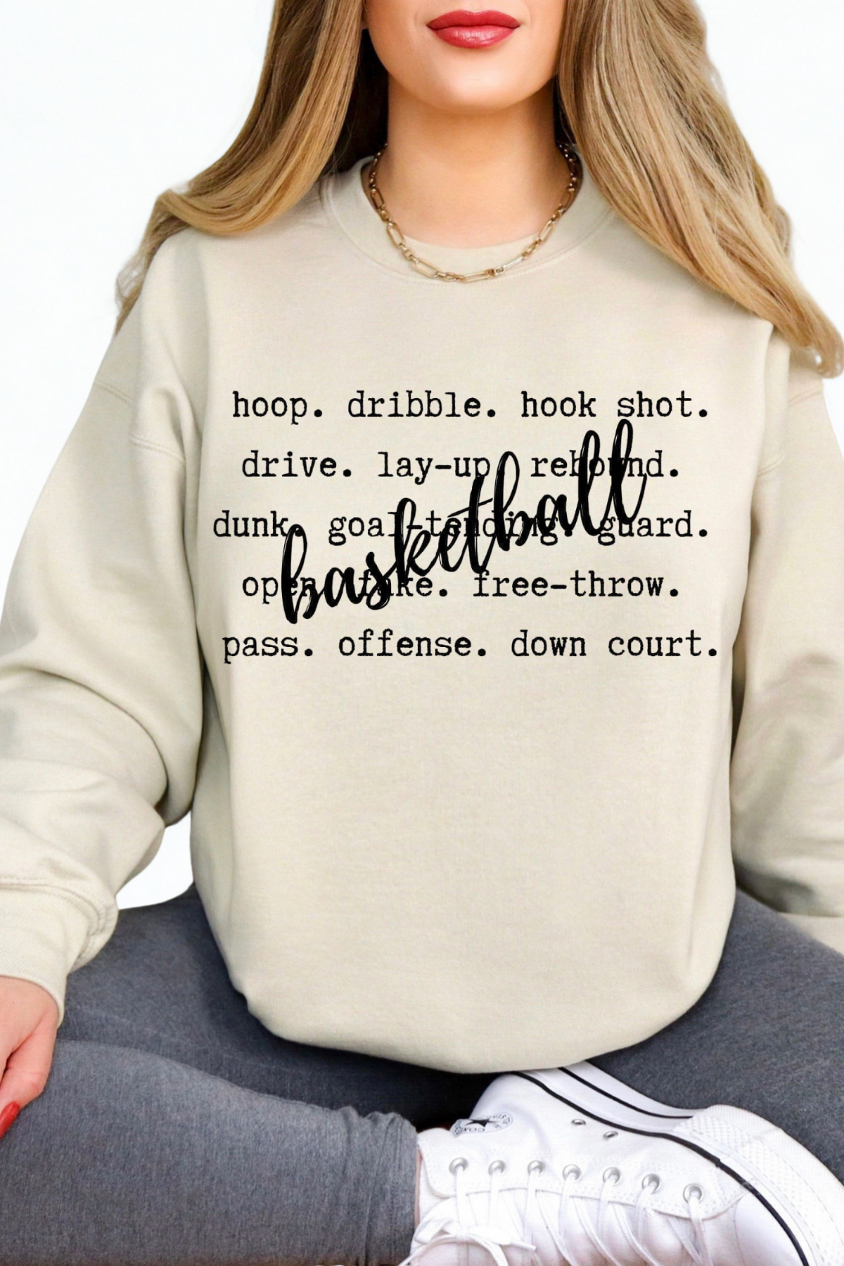 Hoop dreams meet street style with this bold Basketball Typography Sweatshirt. Featuring eye-catching lettering that celebrates the game, this cozy layer brings serious court vibes to your everyday rotation. Perfect for fans who wear their passion on their sleeve—literally. Soft, comfortable, and ready to make a statement whether you're courtside or just vibing with fellow hoops enthusiasts.