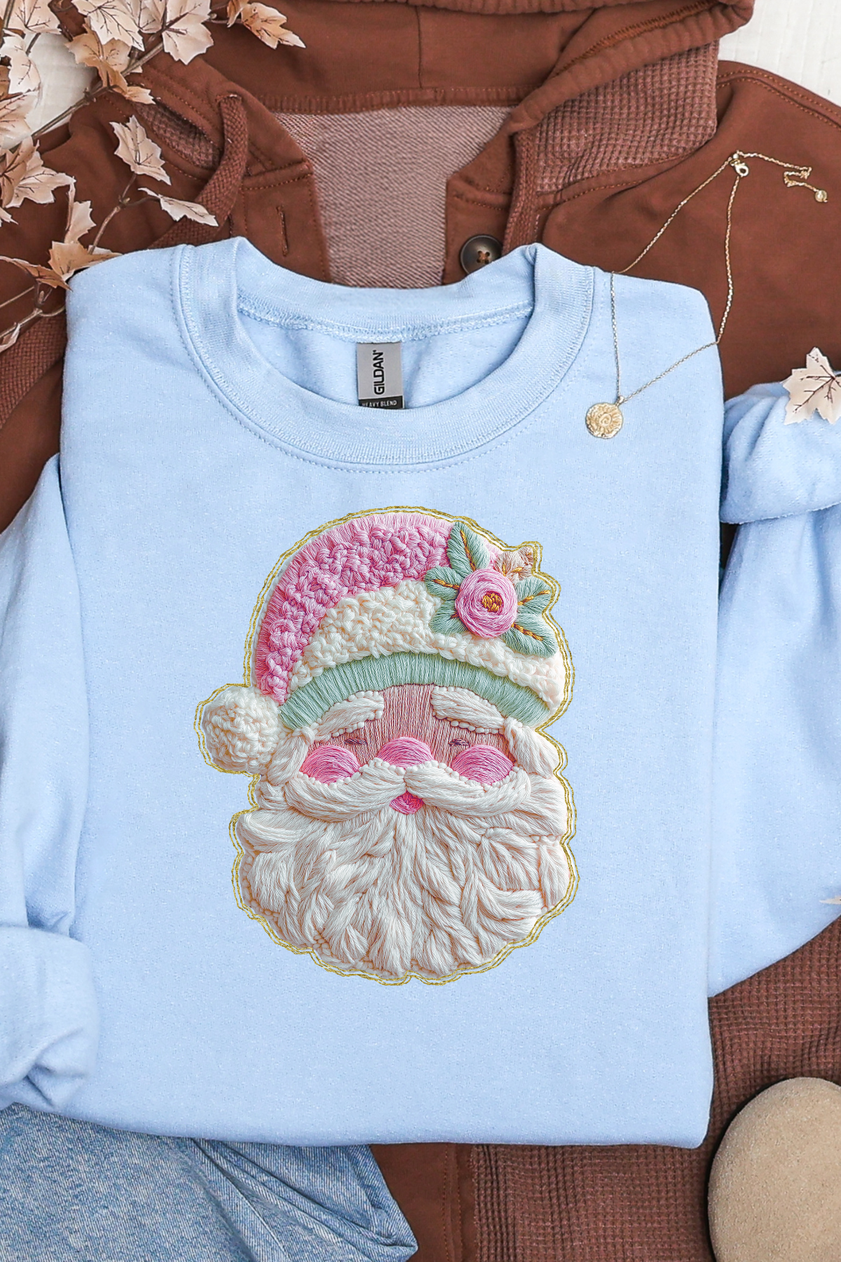 Get cozy and festive with the French Knot Santa Sweatshirt! Featuring a charming Santa design crafted in delicate French knots, this playful sweatshirt adds a touch of handmade magic to your holiday wardrobe. Perfect for chilly winter days, it keeps you warm while spreading cheerful vibes wherever you go. Celebrate the season in style and comfort!