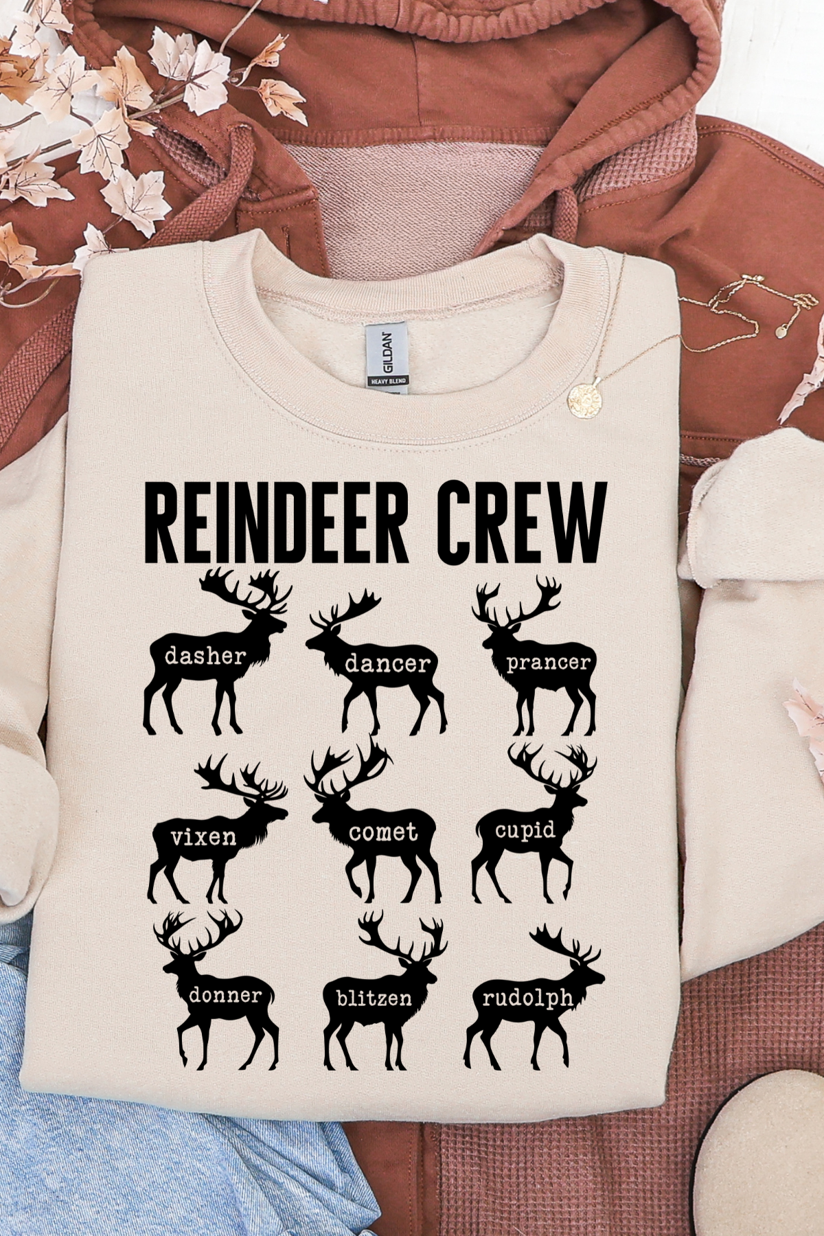 Gather 'round the holiday spirit in this cozy Reindeer Crew Sweatshirt! Perfect for festive gatherings, ugly sweater parties, or just spreading seasonal cheer, this playful pullover features charming reindeer graphics that'll have everyone smiling. Soft, comfortable fabric keeps you warm through winter celebrations, while the fun design makes it an instant conversation starter. Whether you're decorating, caroling, or simply embracing the magic of the season, this sweatshirt brings holiday joy to your everyday wardrobe.