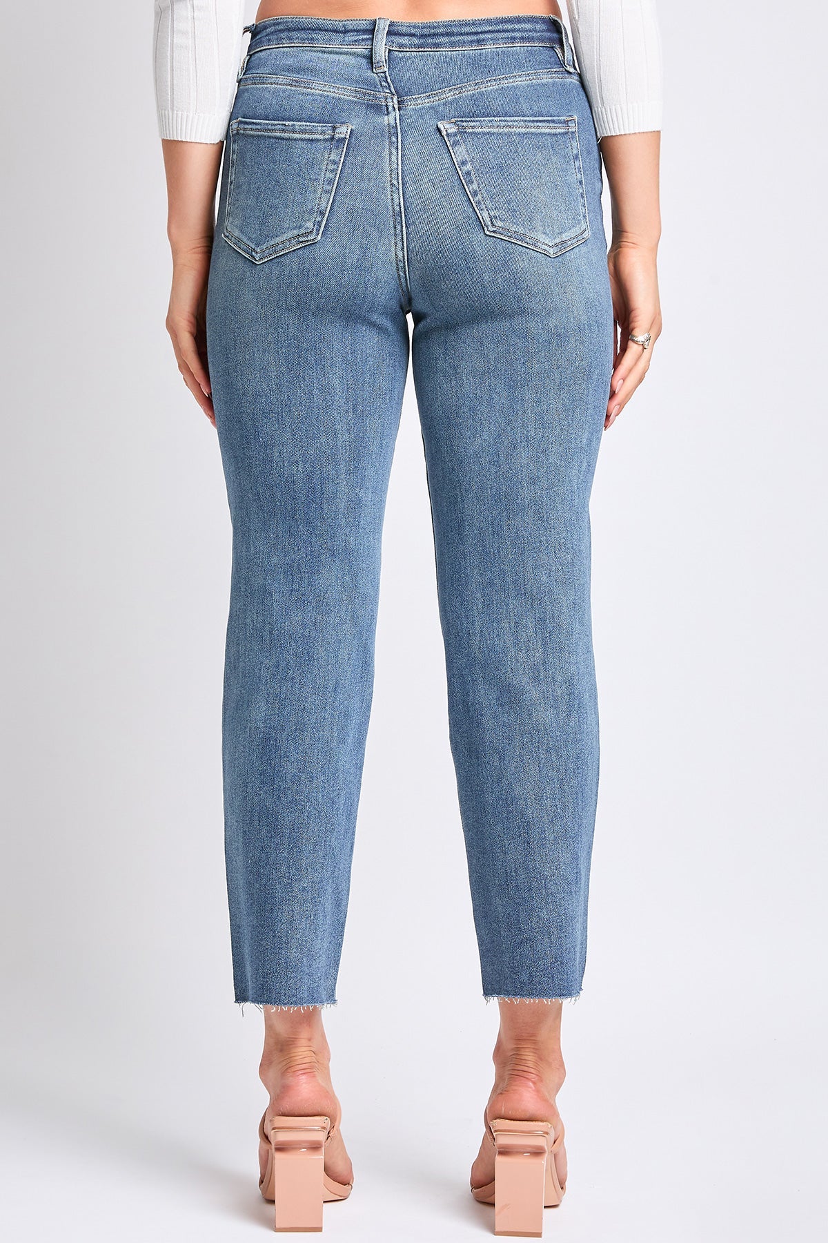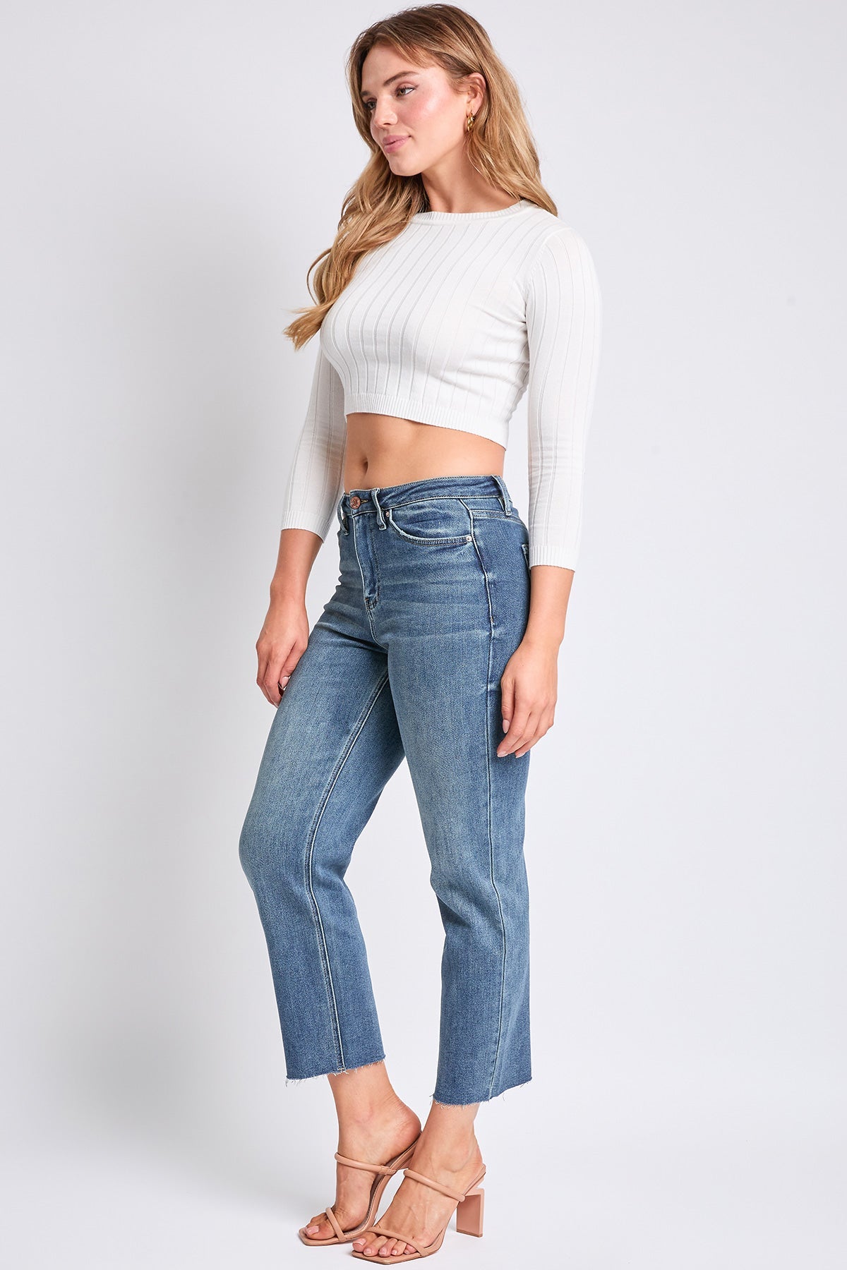 It’s giving main character energy all season long in our Women’s High Rise Cropped Straight Leg Jeans. This high-rise, straight-leg silhouette is designed to cinch your waist and make your legs look longer. Featuring a frayed hem for an effortless look, these jeans are bound to become your go-to style.