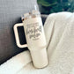 With a handle, straw, and a cap that ensures spill-free sipping, this 40oz tumbler is your go-to companion on game days. Its ample capacity caters to your thirst, whether you're shouting from the stands or just need a moment to refuel.