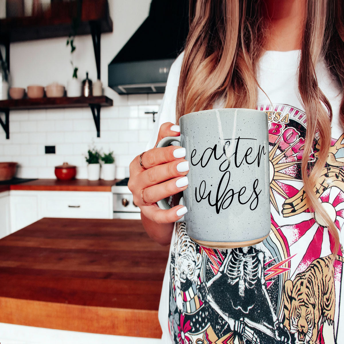 When your morning needs more vibes than the Easter Bunny has hops, this mug is your spring-time spirit animal! Available in "Cotton Candy Pink" or "Robin's Egg Blue" because we're fancy like that.