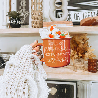 Finally, a mug that gets your unique blend of PSL addiction and horror movie obsession! In stylish orange ceramic (as bright as your love for both slashers and spice), this mug tells the world exactly what fuels your wonderfully weird soul.