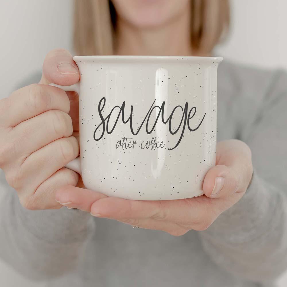 Ceramic mug that documents your transformation from "please don't talk to me" to "now I can destroy you with words!" Perfect for those who need their coffee before unleashing their inner savage.