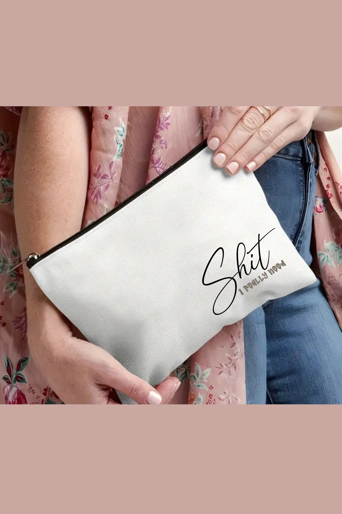 Stay organized with the Shit I Need Canvas Zipper Pouch—a playful and spacious bag ideal for storing your everyday essentials. It measures 7" high, 8.66" long, and 2" wide, making it the perfect cheeky companion for your must-have items.