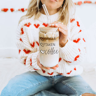 Let’s face it: nothing compares to a solid relationship with coffee! This 20oz glass cup declares your true love status with “Single, Taken, Coffee” and features a heart filled in with white next to “Coffee”—because let’s be real, that’s the only romance we really need!