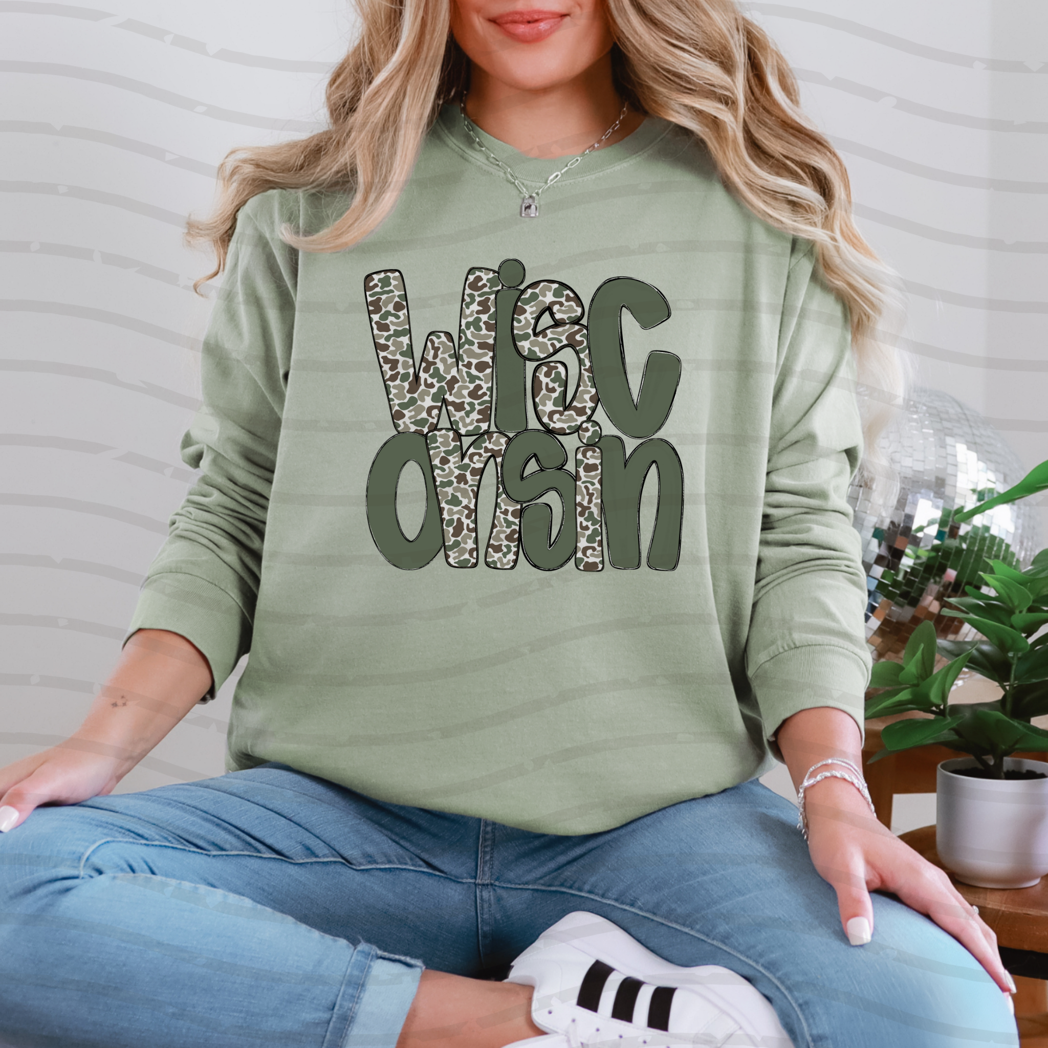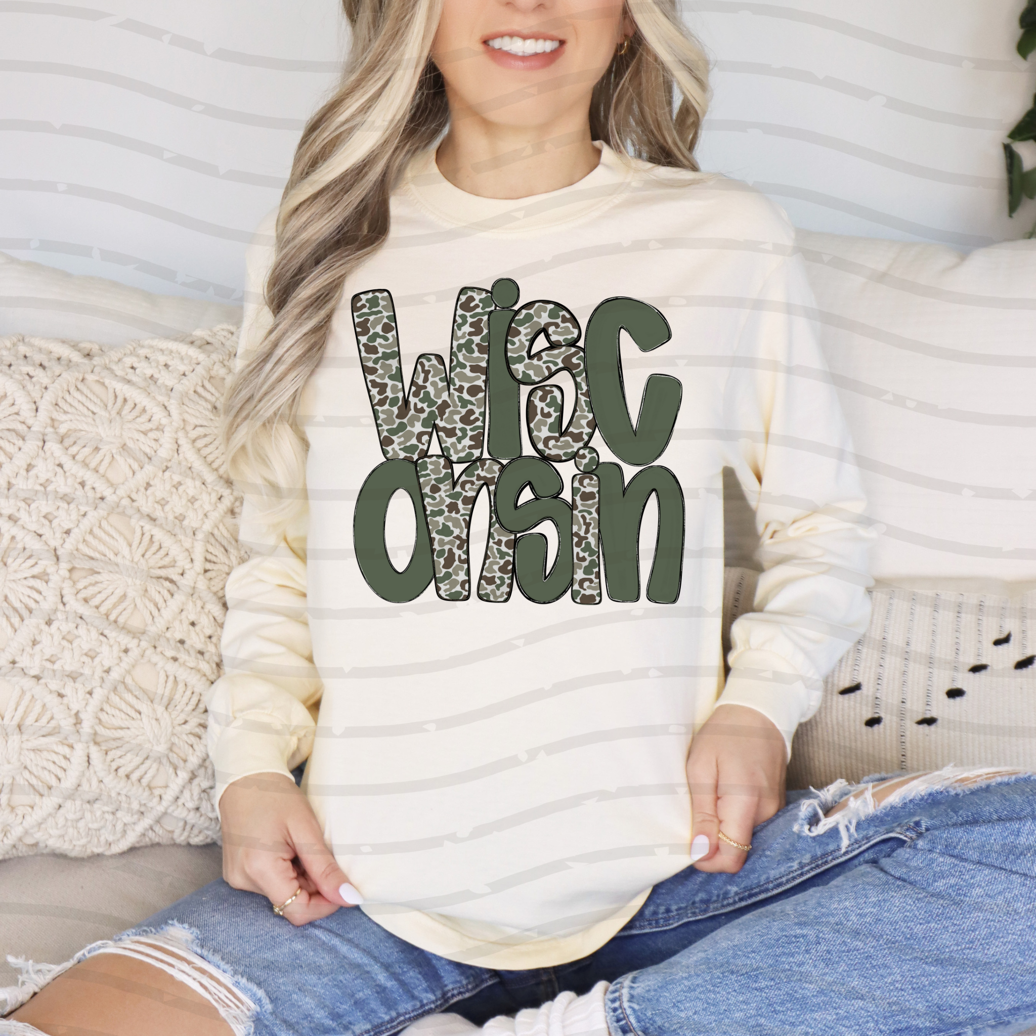 Unleash your wild side with the Wisconsin Camo Long Sleeve! Made with durable fabric and featuring a bold camo print, this long sleeve shirt is perfect for outdoor adventures. Show off your love for the Badger State while staying comfortable and stylish. Get ready to blend in and stand out at the same time!