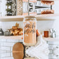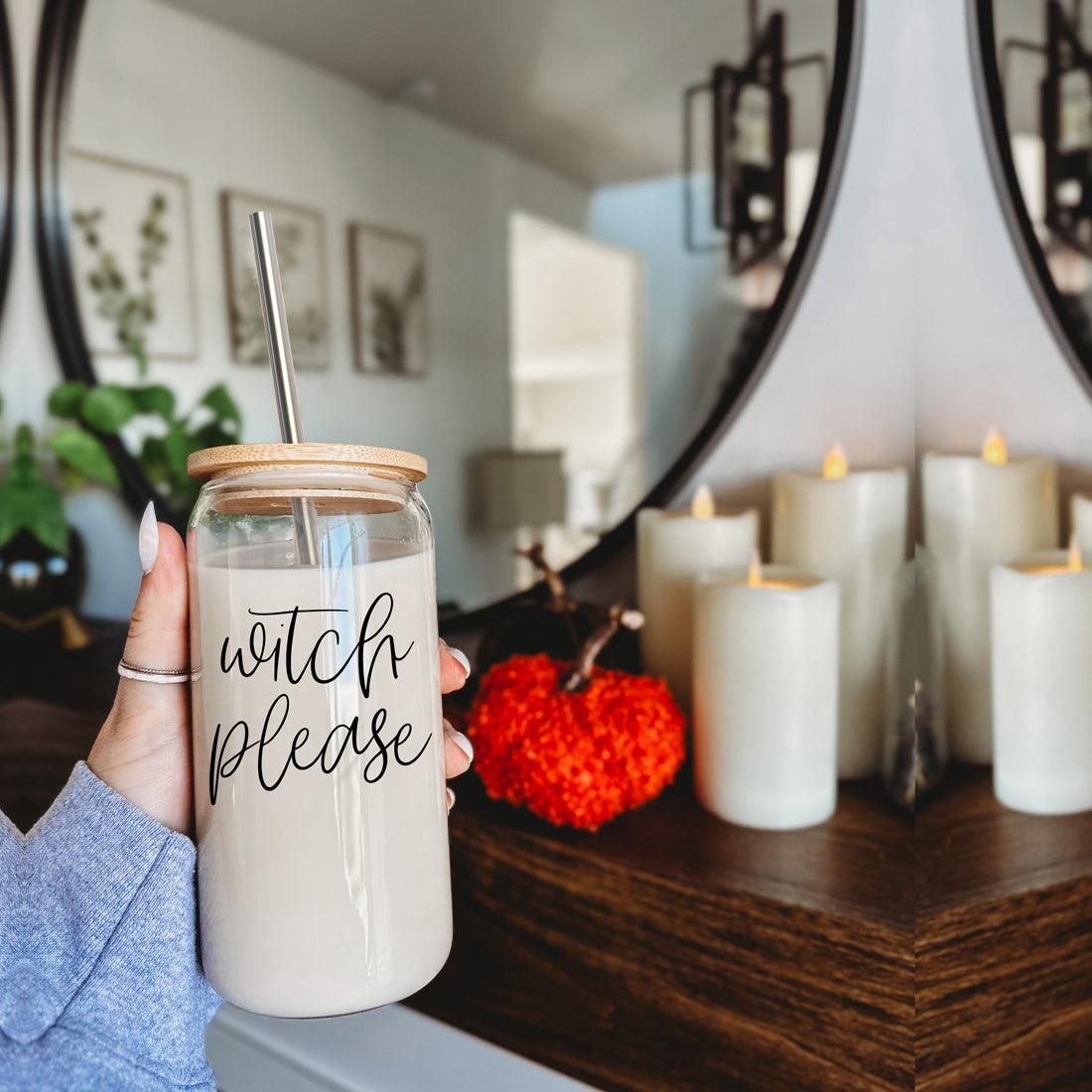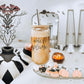 Our glasses with bamboo tops. Drink it with the top and straw of choice, remove the bamboo lid and drink straight from the glass.
