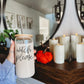 All of our glass drinking cups include a bamboo top, 2 stainless steel straws (1 bent and 1 straight) and a straw cleaner!